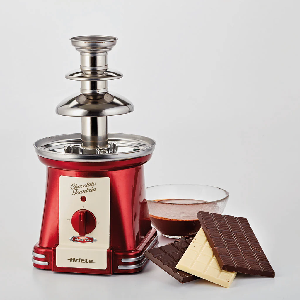 ¿Te imaginas una cascada sin fin de tu chocolate favorito? Con la Fuente de chocolate Party Time Ariete, ¡tu sueño se hará realidad! Esta fuente con torre de acero inoxidable te permitirá disfrutar en casa, de forma fácil y muy cómoda, del delicioso sabor del chocolate fundido cuando tú quieras. ¡Es la opción ideal para una merienda de lo más divertida!