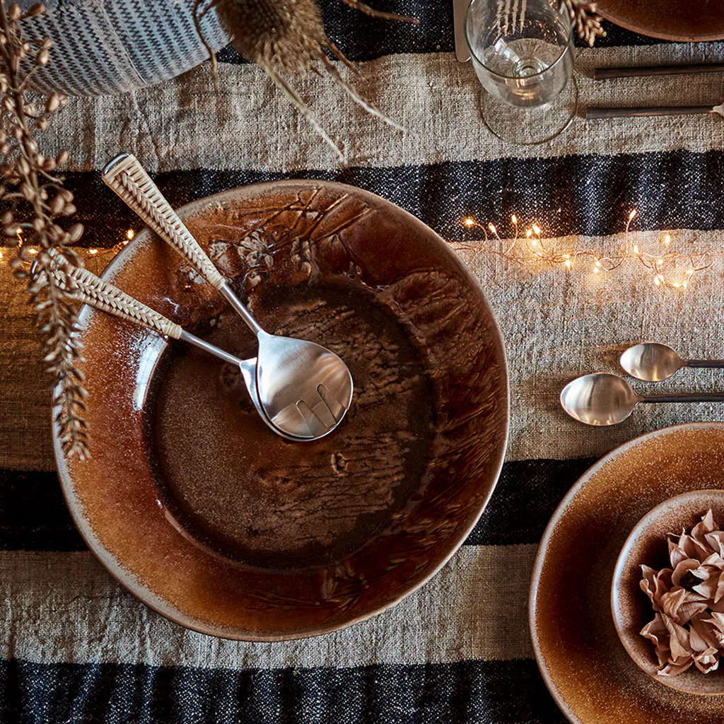La Fuente cerámica Annabelle de Affari of Sweden es una fuente honda y ensaladera preciosa y versátil de cerámica esmaltada y con un grabado de lo más delicado, con la que servir con elegancia cualquier receta. Su profundidad y amplitud te ofrece la capacidad ideal para servir desde una ensalada verde, de pasta, arroz o legumbres a una fuente maravillosa en la que servir tu carne asada, unas tostas de pan o usarla como frutero. Su bonito color terracota con un sutil degradado, llenará tu mesa de estilo y calidez en cualquier momento y celebración.