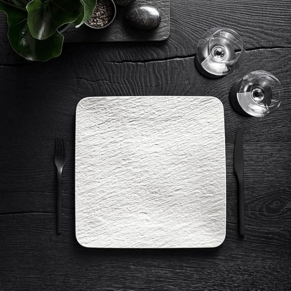 La Fuente para servir de porcelana Manufacture Rock Villeroy & Boch aporta un aire contemporáneo y sobrio a la mesa. Su geometría cuadrada y el blanco puro convierten cada emplatado en un pequeño espectáculo; es una pieza que, sin estridencias, sabe cómo captar la mirada.