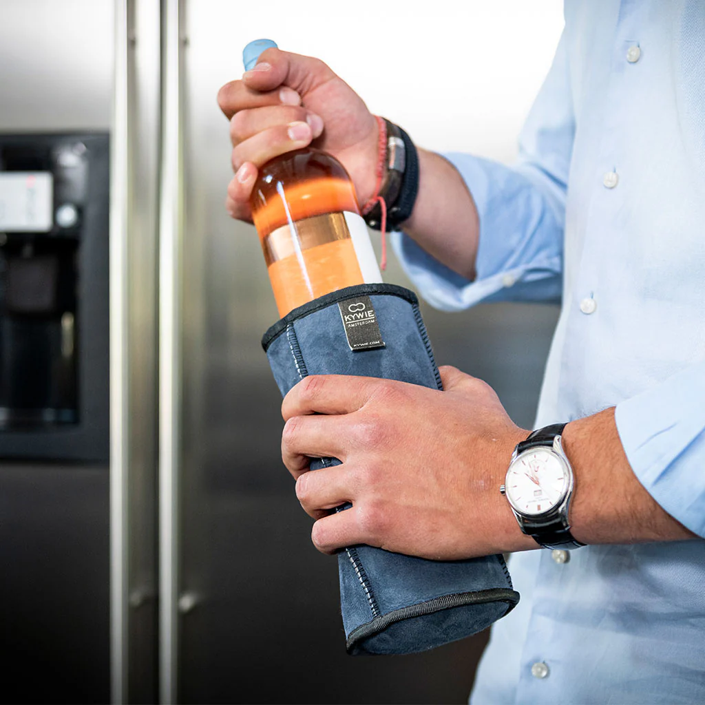Presta atención, porque la Funda para vino Kywie va a convertirse en la protagonista de tu mesa. Fabricado a mano artesanalmente, este enfriador para tus botellas de vino está confeccionado 100% con lana de oveja Texel, que aísla y mantiene el frío durante 4 horas.