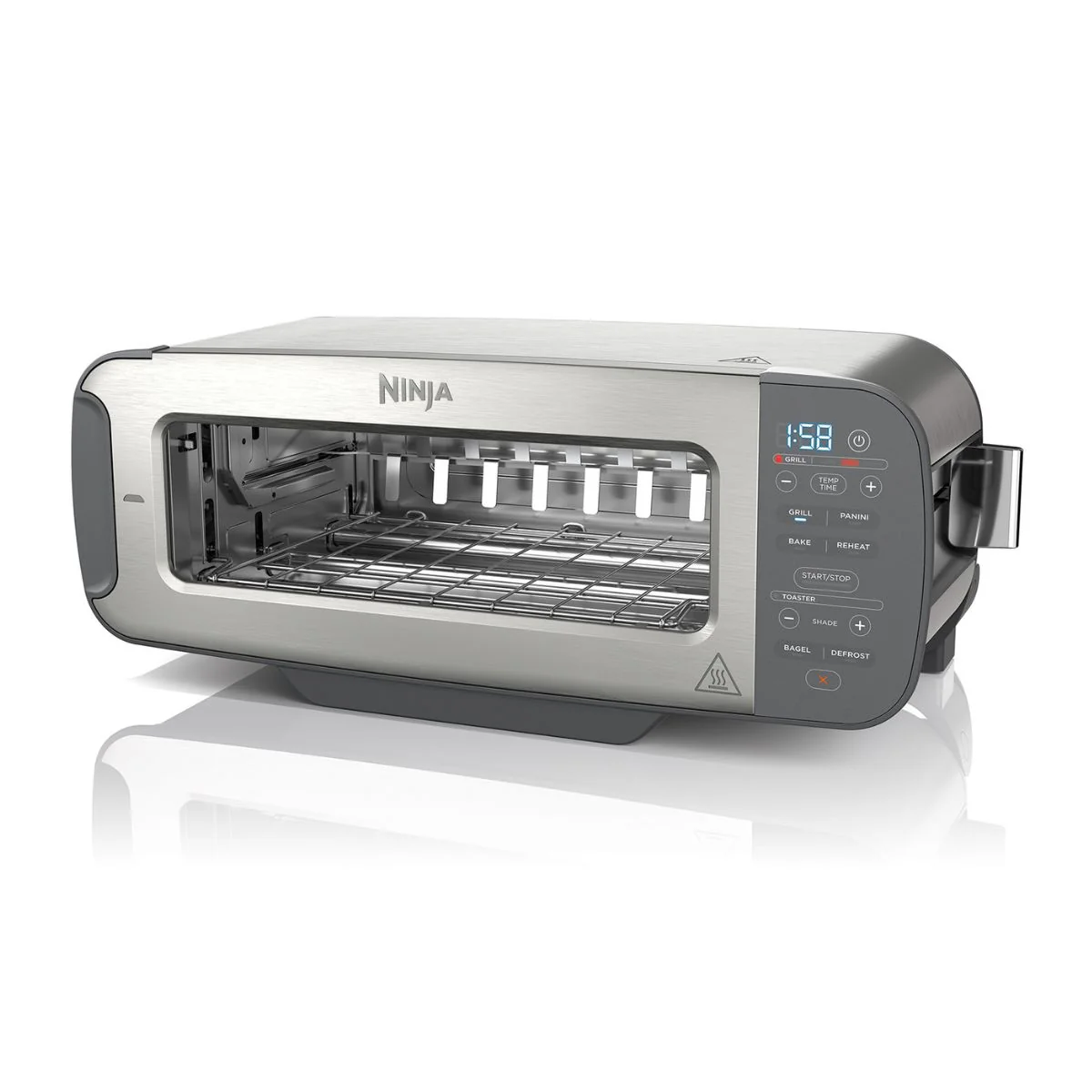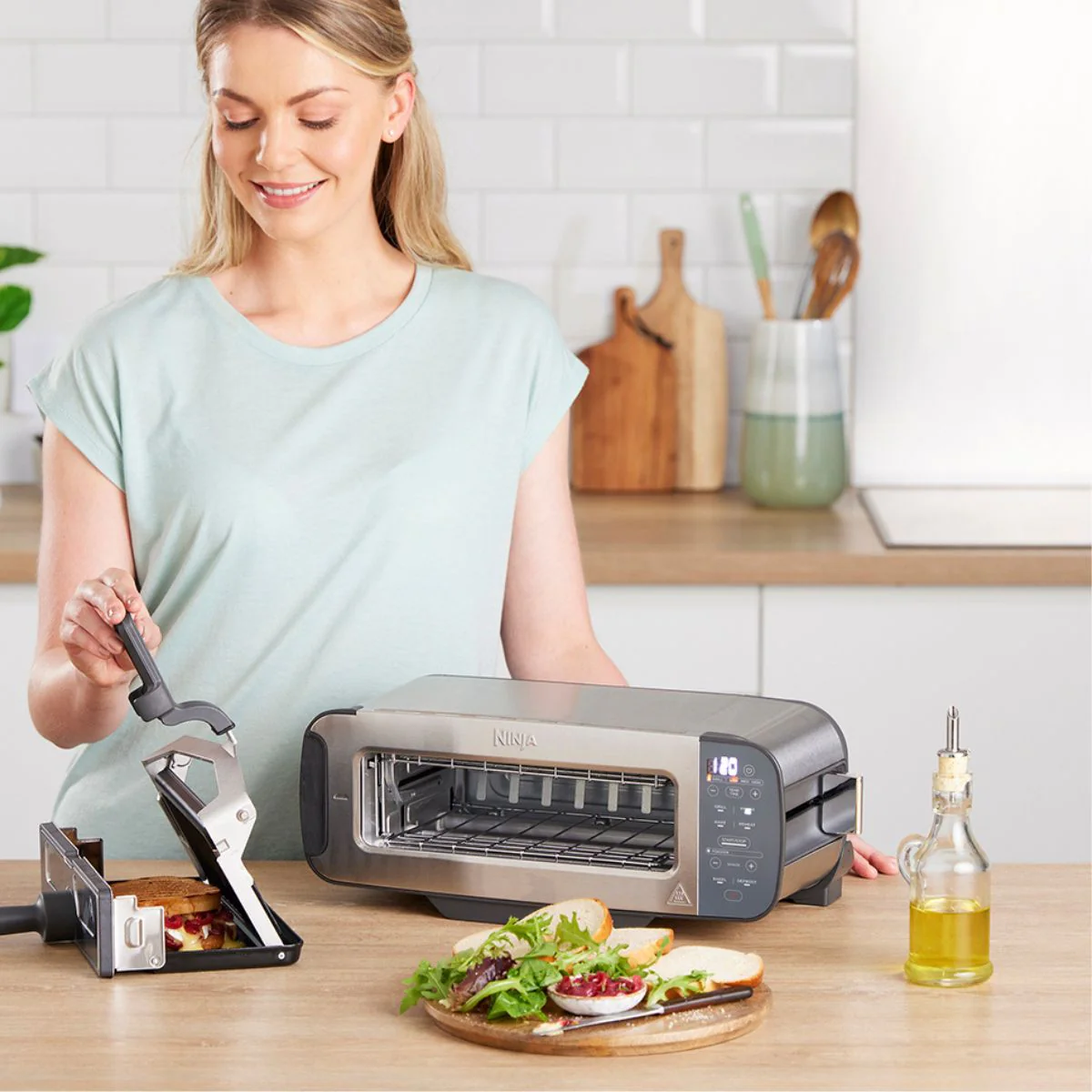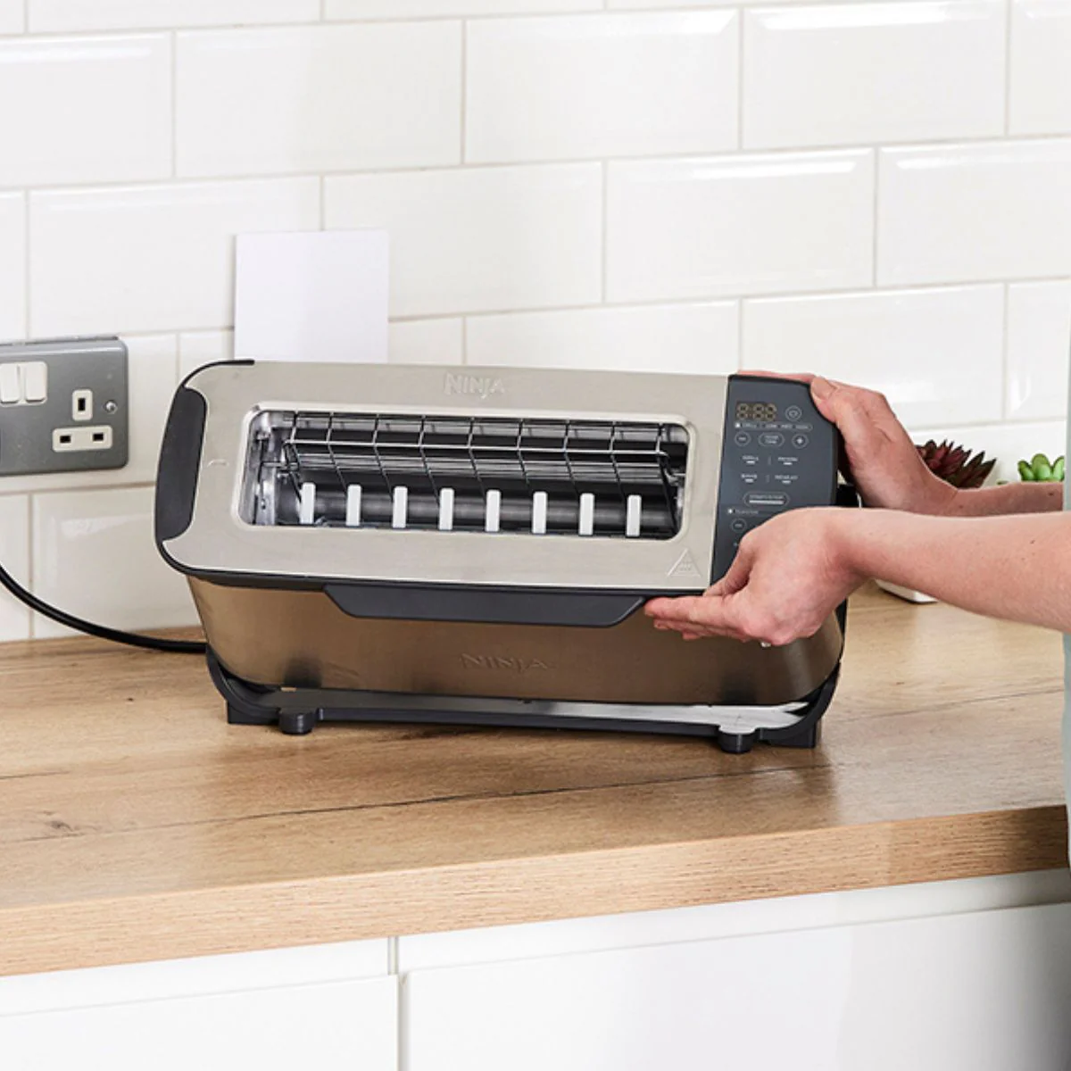 Con el Grill 3 en 1 Foodi ST202 Ninja® tendrás en un utensilio tostadora, parrilla y sandwichera con todas sus funcionalidades y ocupando el mínimo espacio. Con solo girarla, transformarás el tostador de pan en una estupenda parrilla o en una sandwichera de lo más funcional. Tres electrodomésticos en un único aparato con el que podrás descongelar y tostar las rebanadas de pan o los bagels, calentar y marcar en la parrilla tus bocadillos y paninis, hornear empanadillas o croissants y recalentar la porción de pizza que quedó de la cena. ¡Una maravilla!