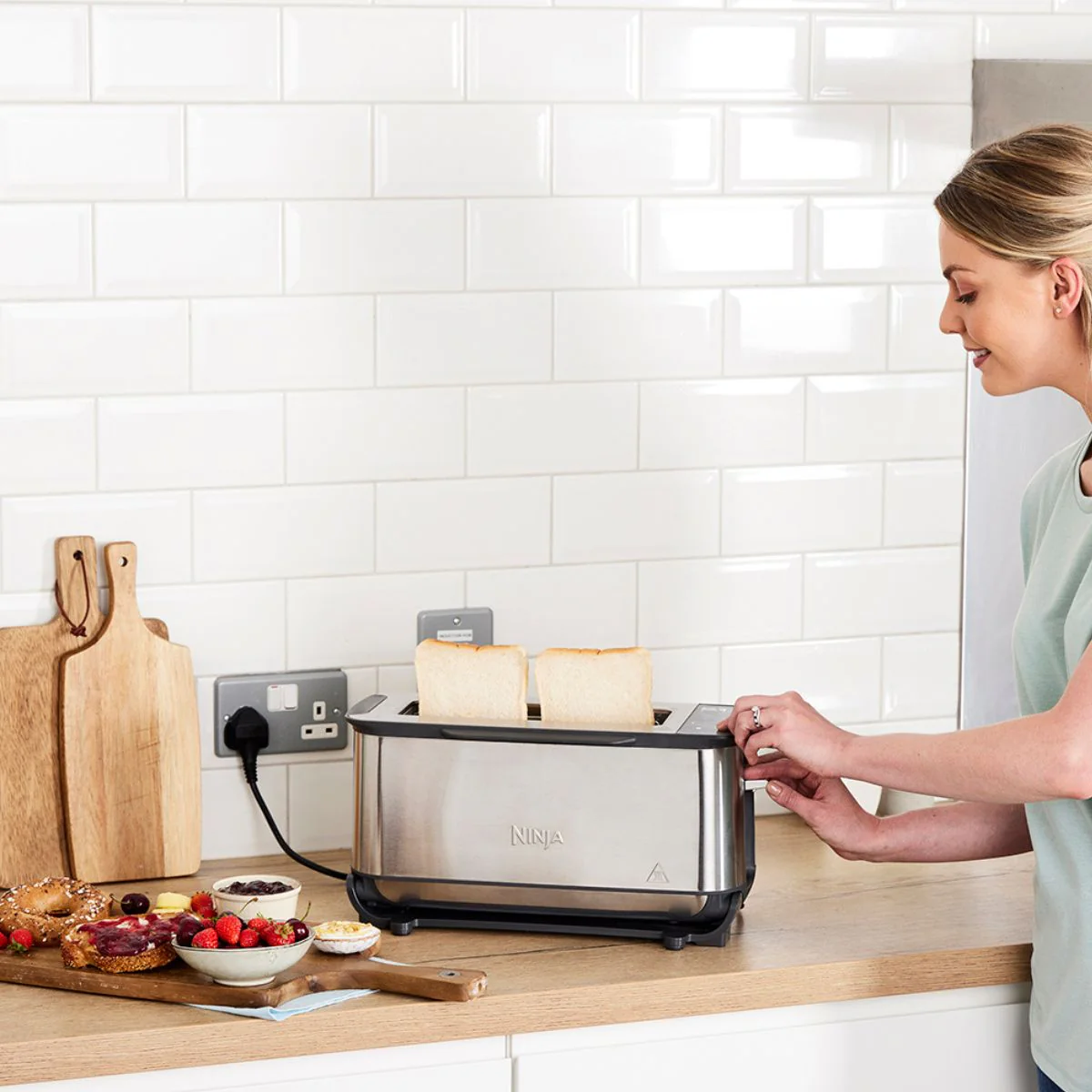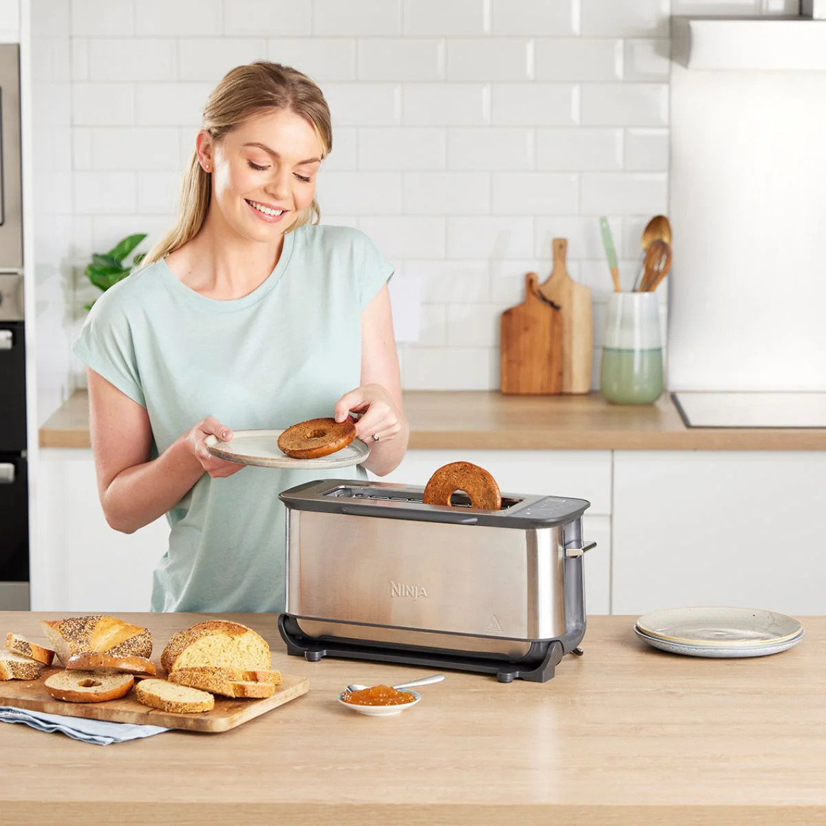 - Como tostadora, cando quieras preparar las tostadas del desayuno, descongelar o tostar pan para la cena, lo vas a tener muy fácil. La tostadora dispone de una ranura extralarga y muy ancha, en la que podrás tostar 2 rebanadas de pan o un bagel abierto por la mitad. Sus 7 niveles de tostado te garantizan un resultado dorado y uniforme a tu gusto.