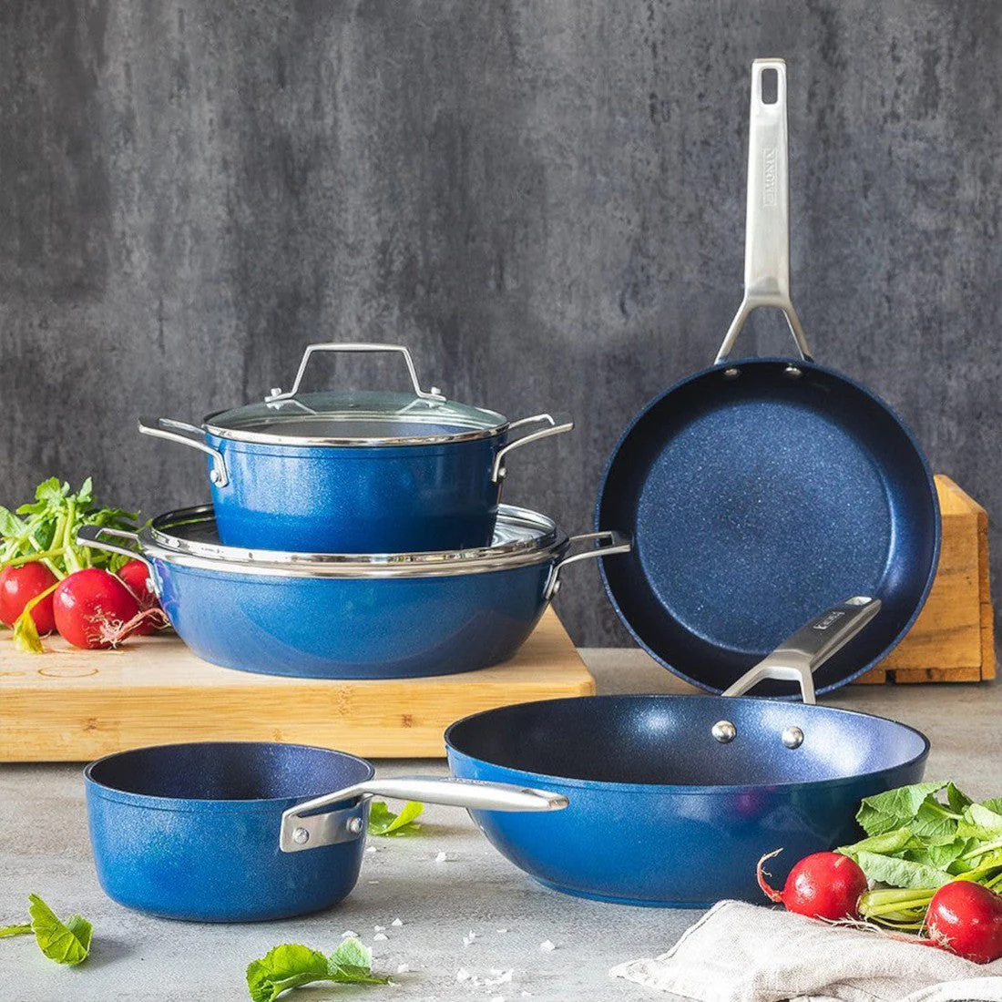 El grill con rayas Diamond de Monix es una parrilla antiadherente de alta calidad y amplia superficie (28 cm de lado). Su diseño es bonito (de hecho, ¡Ese azul junto con el mango de acero es precioso!), y se junta una calidad de lo más alta gracias a su fondo difusor de gran espesor (4,5mm de fondo, que reparten fabulosamente bien el calor), junto a un antiadherente en el que cocinarás con toda comodidad: ¡en su antiadherente Quantanium reforzado con partículas de titanio y de diamante no se pegará nada!
