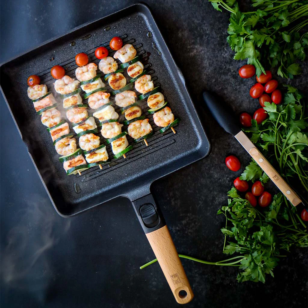 - Grill antiadherente con rayas y mango de madera desmontable Market de BRA.