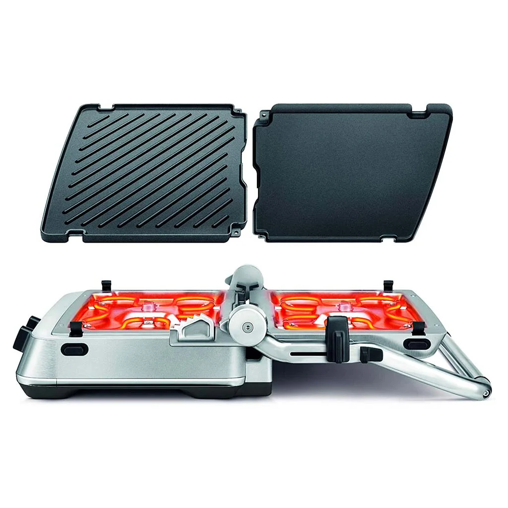 El Grill eléctrico BBQ&Press de Sage es un grill de lo más funcional, ya que puedes utilizarlo como plancha para tus sándwiches, o abrirlo completamente como una parrilla, regulando la temperatura de cada placa por separado y disfrutar de una comida en el jardín con tus amigos. ¡Es fantástico!