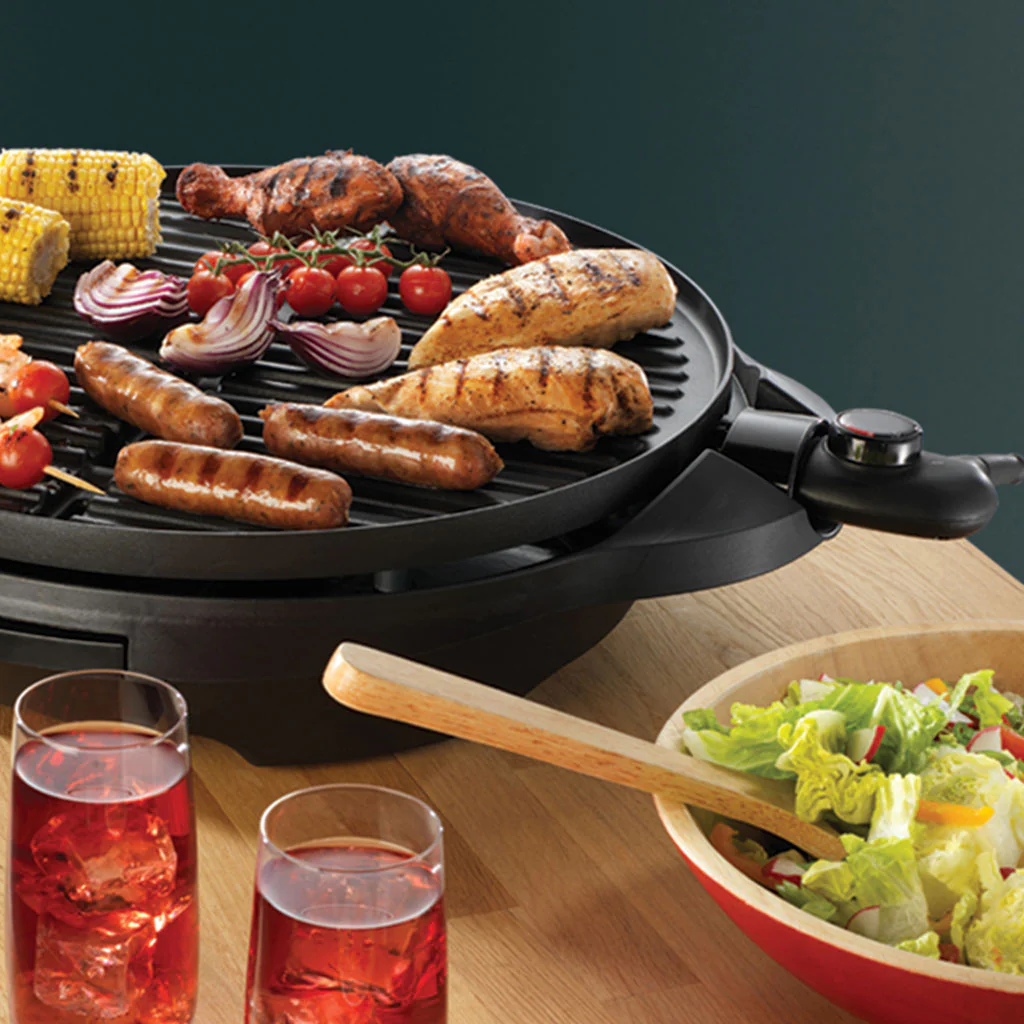 Este grill es ideal para esos grandes encuentros familiares o con amigos, ya que, gracias a su gran placa antiadherente que hará que tus alimentos no se peguen, esta parrilla te permite cocinar hasta 15 porciones de carne, pescado o verduras de una sola vez. Ya sea en tu apartamento, patio, o incluso en una caravana, este grill es ideal para cualquier espacio tanto interior como exterior (especialmente donde no se pueda usar carbón o propano). ¡Podrás disfrutarlo hasta en tus vacaciones en el camping, haciendo una típica y deliciosa parrillada perfecta en cualquier noche de verano!
