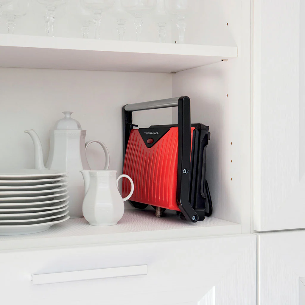 Con el Grill eléctrico Slim Panini Grill Ariete podrás cocinar cualquier alimento sin importar su altura, gracias a su plancha superior basculante que se adapta fácilmente al grosor de la pieza. Tostadas, brochetas, sandwiches, o unas tiras de pimientos a la parrilla, sin que se pegue nada y casi sin aceite. Y además, gracias al reparto uniforme de la temperatura, conseguirás un tostado homogéneo en toda la superficie de los alimentos.