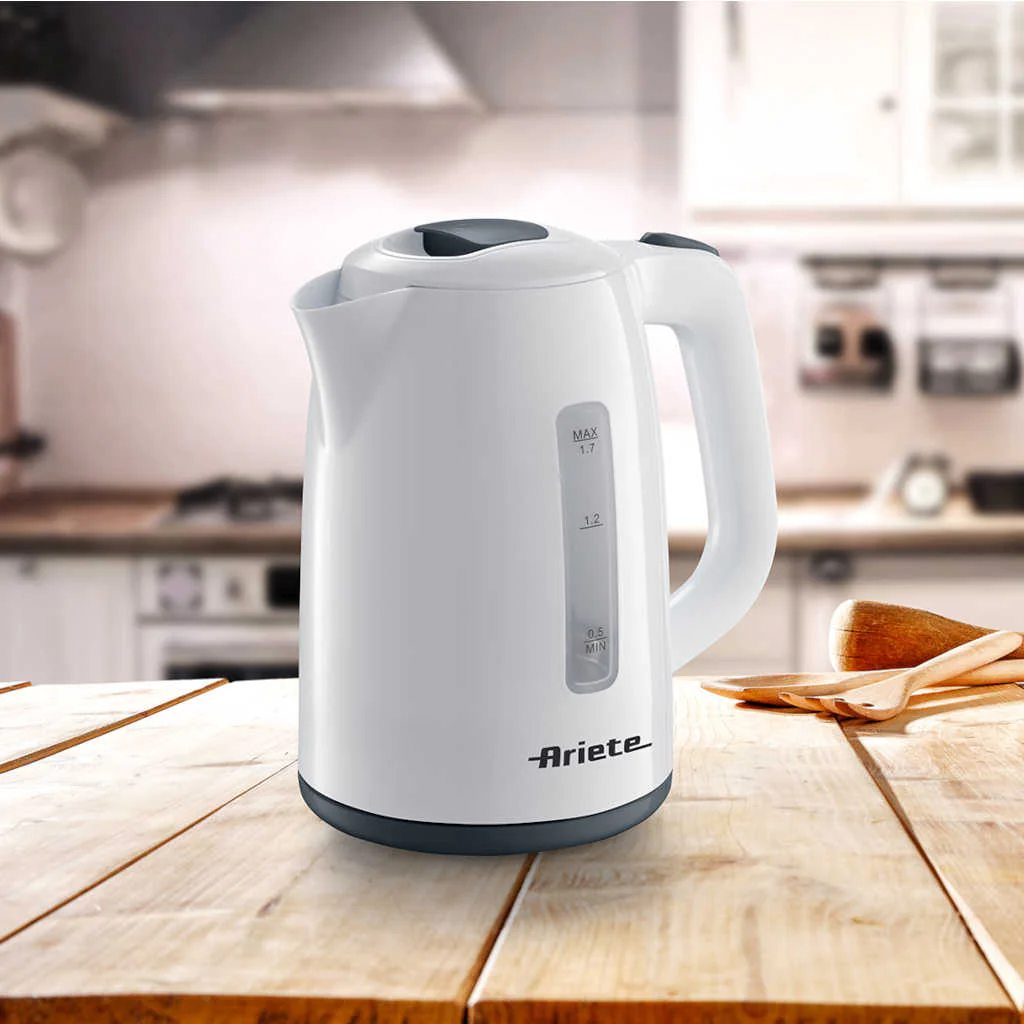 Con el Hervidor eléctrico Ariete podrás calentar agua para café, té e infusiones o incluso para cocinar de manera más rápida. Gracias a su potencia de 2.200 W y su capacidad de 1,7 litros, disfrutarás de deliciosas bebidas calientes en cuestión de minutos.