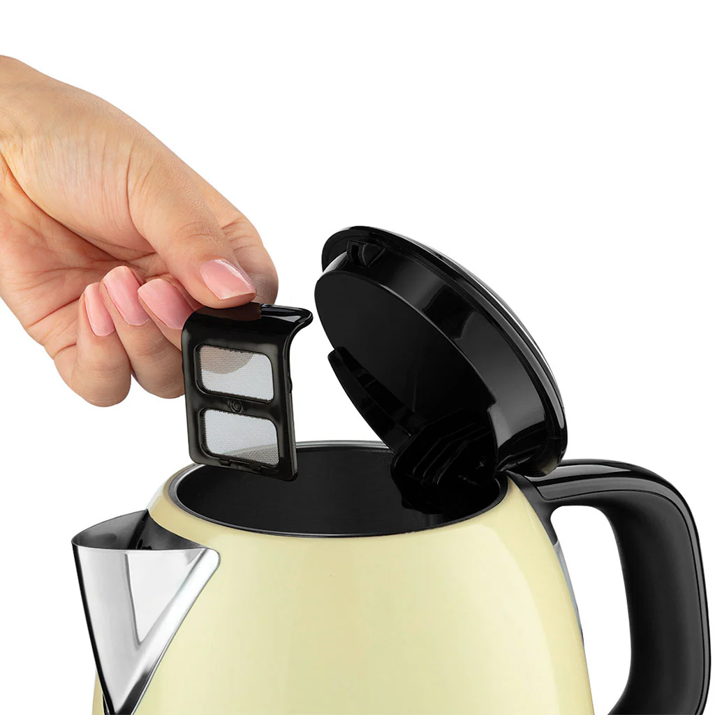Este hervidor compacto no solo es bonito, sino también muy práctico. Viene con una base de 360º para que puedas colocarlo desde cualquier ángulo, una boquilla de precisión para evitar salpicaduras, y un filtro de agua extraíble y lavable. Además, incluye una luz indicadora de encendido, una función de apagado automático y un indicador de nivel de agua que hacen que sea super fácil de usar.