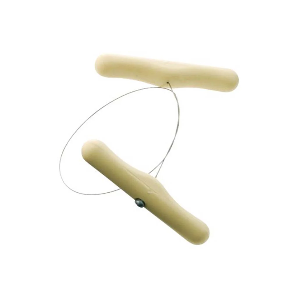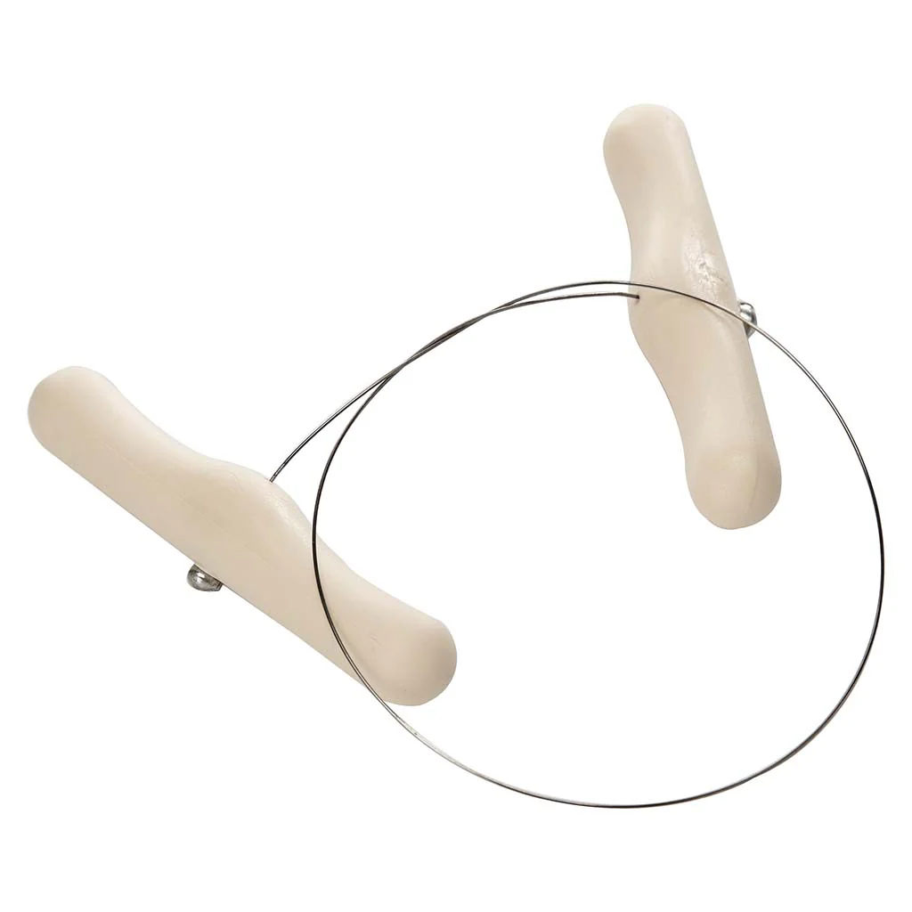 Este cable de acero inoxidable es ideal para cortar finamente alimentos algo blandos o poco consistentes para el cuchillo. Verás qué líneas de corte más perfectas sacas con él… ¡Se acabó luchar con la hoja del cuchillo para que suelte la mantequilla!