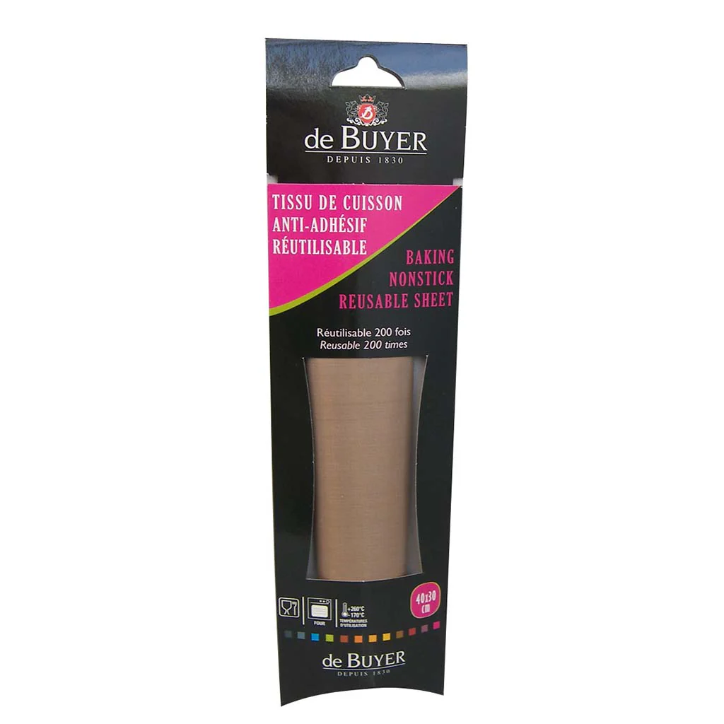 Con la Hoja de cocción reutilizable De Buyer ¡no gastarás más papel de hornear! Porque esta lámina antiadherente sin PFOA es reutilizable más de 200 veces. Fabricada de fibra de vidrio es flexible y fina, adaptándose a tus moldes sin que se pierda calor en el horneado.