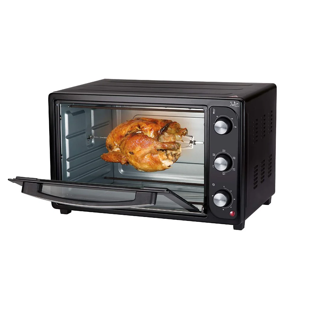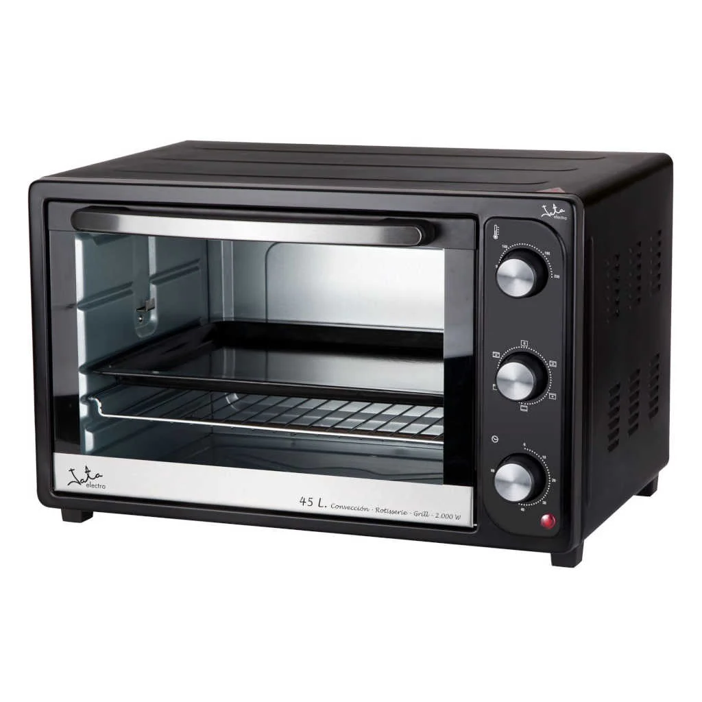 El Horno 4 funciones de Jata de 45 l te permite cocinar todo lo que imagines. Desde un pollo asado, como en la mejor rotisserie, a una hogaza de pan o una deliciosa lasaña con su queso gratinado. Este horno eléctrico de sobremesa es práctico, intuitivo y muy eficiente, gracias a su rápido calentamiento.