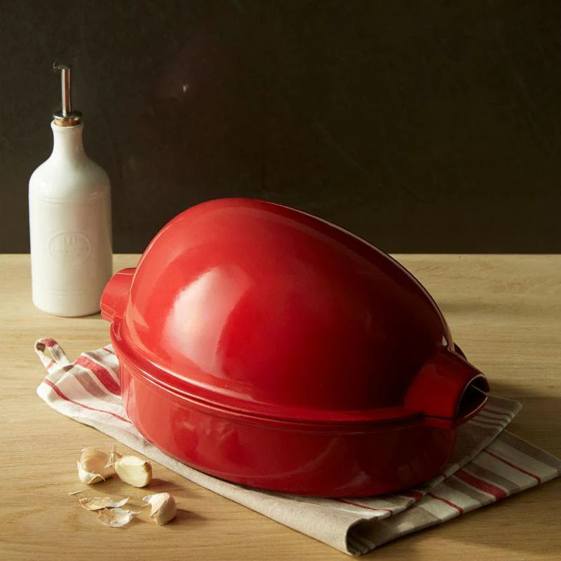 Más francés que el museo del Louvre, el Horno cerámico para asar pollo o pavo Emile Henry es una pieza codiciada por todos los cocinillas de pro. La cerámica Emile Henry te garantiza años de disfrute en la cocina y la mesa.