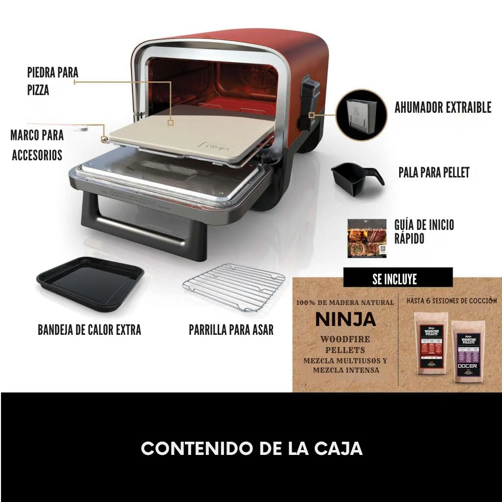 - La tecnología Woodfire que permite combinar, si así lo deseas, las ventajas de una parrilla eléctrica con el sabor que añade el pellet. El pellet no actúa como combustible, sino que lo hace como un ingrediente más cuando quieres aportar un toque de sabor a leña. El pellet Ninja Woodfire está hecho de madera noble 100% de primera calidad y solo necesitarás una cucharada en el quemador para aportar un maravilloso sabor a lo que cocines.