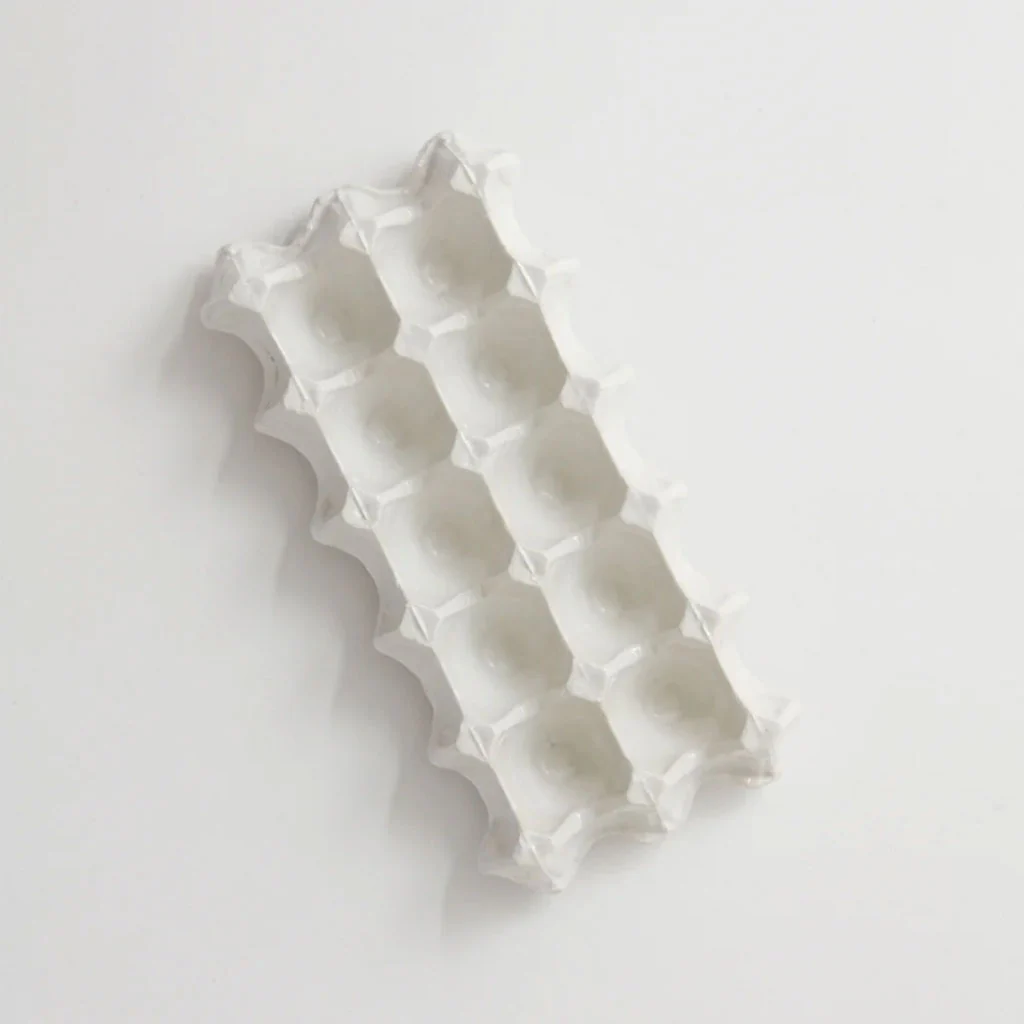 - Huevera cerámica esmaltada de color blanco.