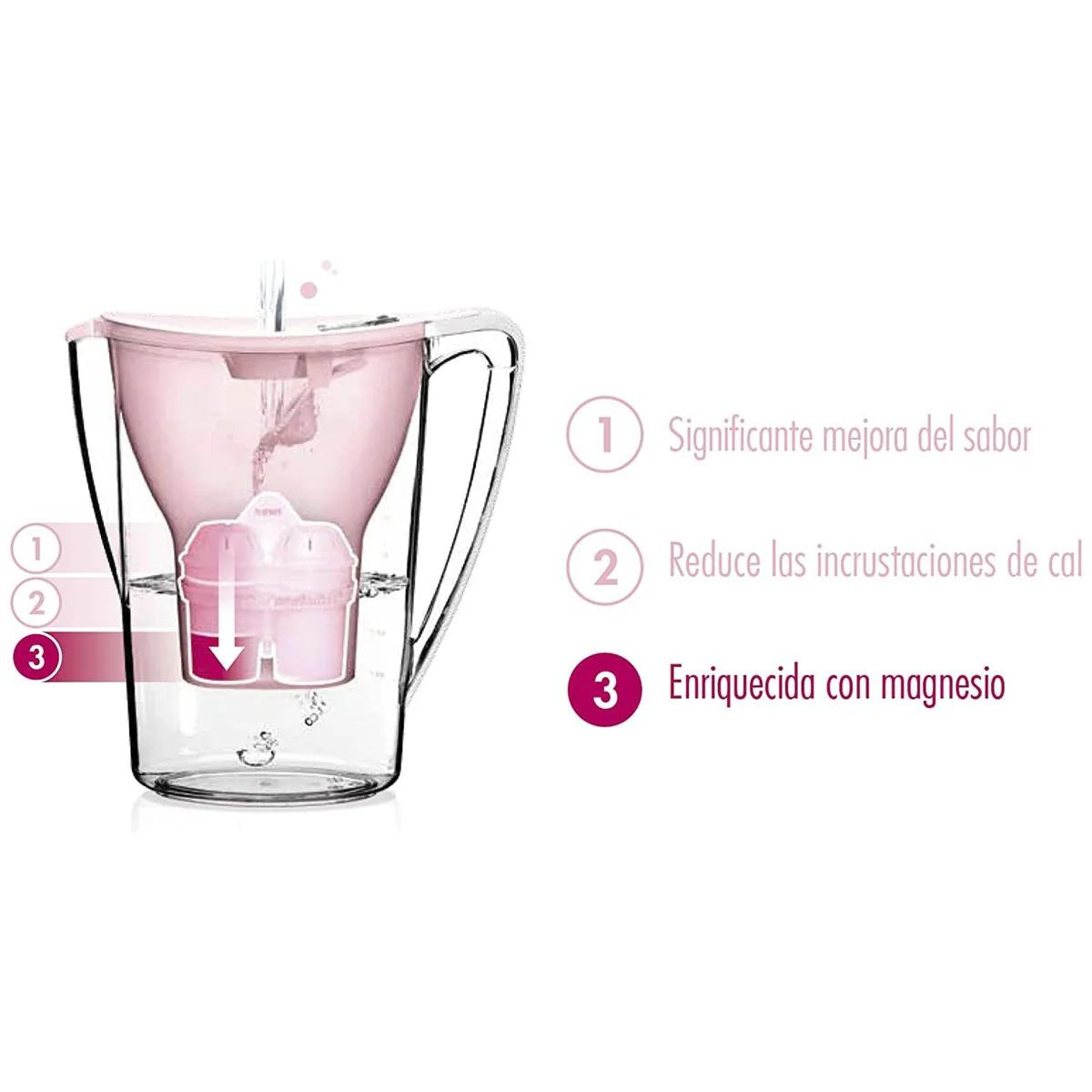 • La jarra se va llenando con agua enriquecida, más saludable, limpia y con mejor sabor.