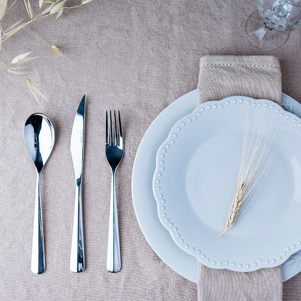 Cubertería Torino fabricada en acero inoxidable 18/10 con un diseño contemporáneo que aúna practicidad y elegancia en cualquier mesa.