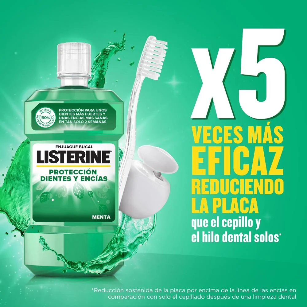LISTERINE Dientes y Encías Enjuague Bucal Sabor Menta 500ml + 250ml GRATIS
