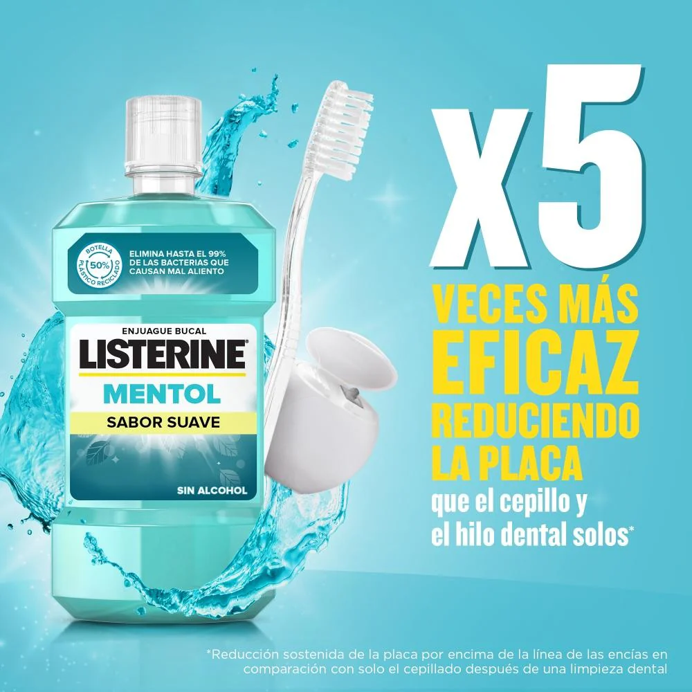 LISTERINE Mentol Sabor Suave 500 ml + 250 ml GRATIS