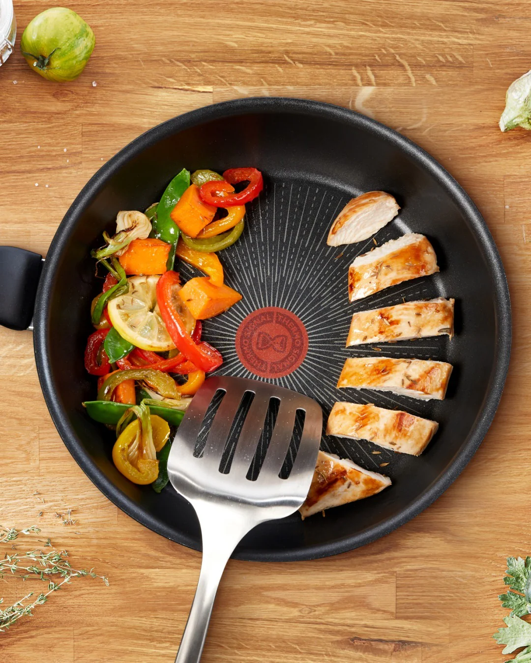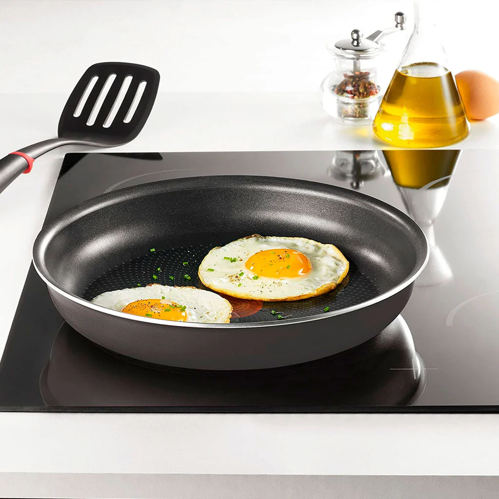- Tecnología Thermo-Signal. El círculo indicador central de la sartén cambiará de color cuando alcance la temperatura óptima para empezar a cocinar. De rojo a granate para unos resultados perfectos.