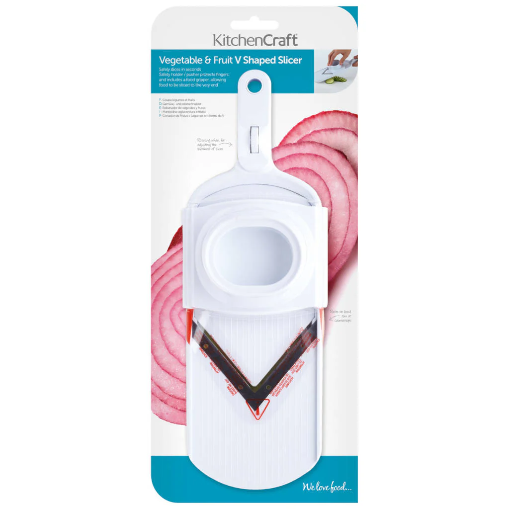 La Mandolina de cocina KitchenCraft con cuchilla en forma de V es la solución perfecta para simplificar tu vida en la cocina. Incluso los chefs más dedicados buscan maneras de hacer que la preparación de alimentos sea más rápida y sencilla en medio de nuestro ajetreado estilo de vida. ¡KitchenCraft lo sabe bien! Por eso han creado esta mandolina en forma de V. Es una herramienta rápida, segura y superconveniente que ahorra minutos en esas tareas de corte complicadas, como rebanar cebollas para un salteado o cortar pepinos para hacer un gran lote de sándwiches.