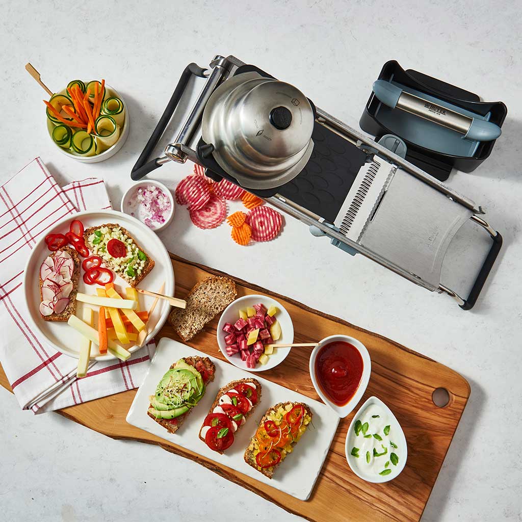 2. No es solo una mandolina. ¡Es un conjunto de lo más completo para que puedas hacer cualquier corte que imagines!