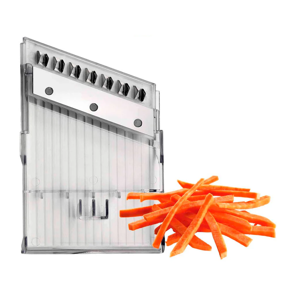 En la mandolina Vario tanto cortarás verduras blandas y fruta como verduras duras, y conseguirás cortes homogéneos para tus recetas rápidamente.