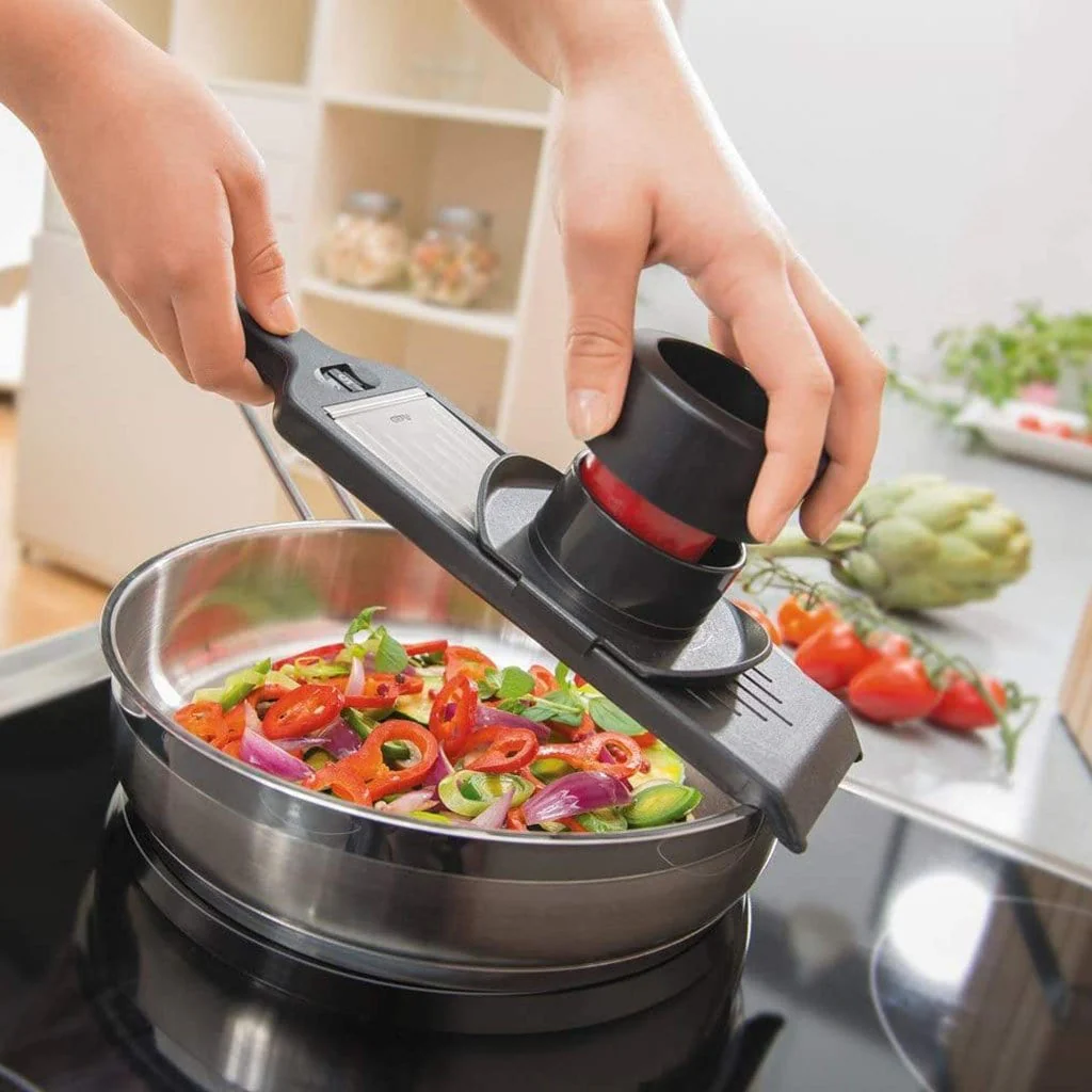 - 5 grosores ajustables fácilmente, para cortar rodajas de 1 a 5 mm