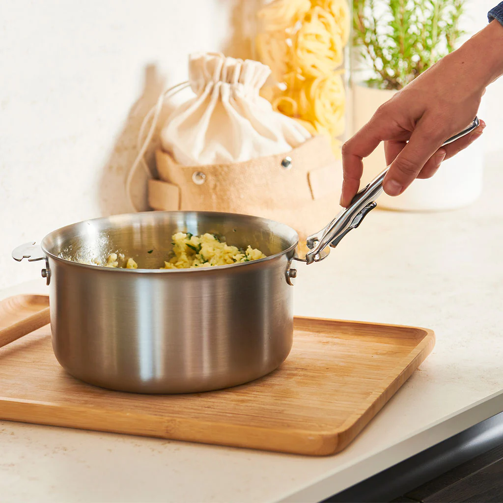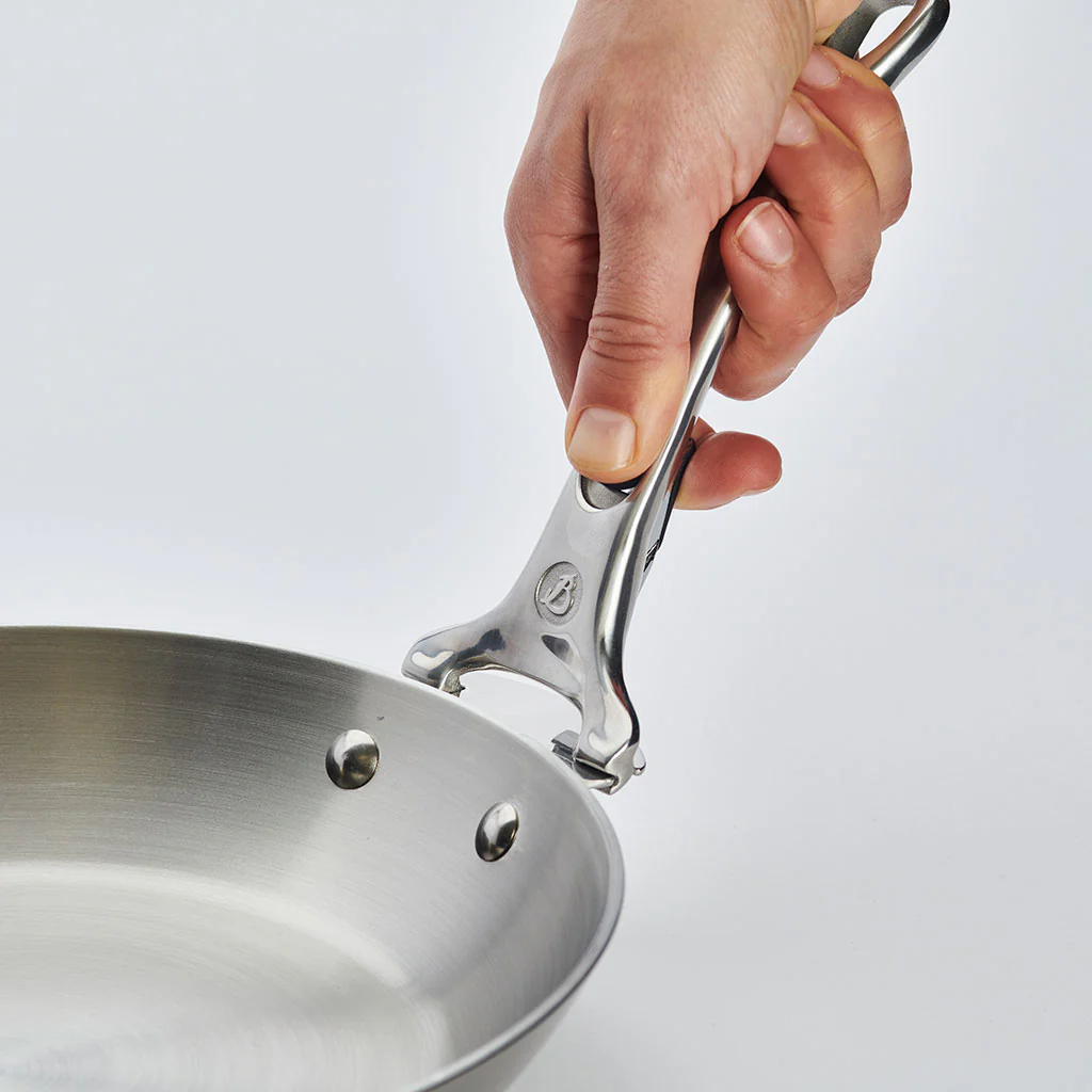 Tanto el mango como las asas son aptos y únicos para todas las piezas de la colección Loqy de De Buyer, que incluye utensilios de cuatro gamas diferentes: