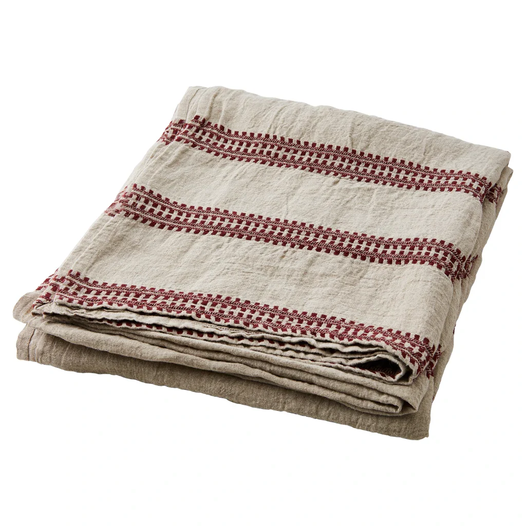 Con el Mantel de lino Noel Affari of Sweden vestirás tu mesa con elegancia. El mantel es una amplia y encantadora pieza textil de lino en color crudo, y cuenta con un precioso bordado en hilo granate de algodón, que dibuja unas anchas líneas decorando todo el mantel. Su aire rústico aportará calidez a tu mesa y encantará a tus invitados.