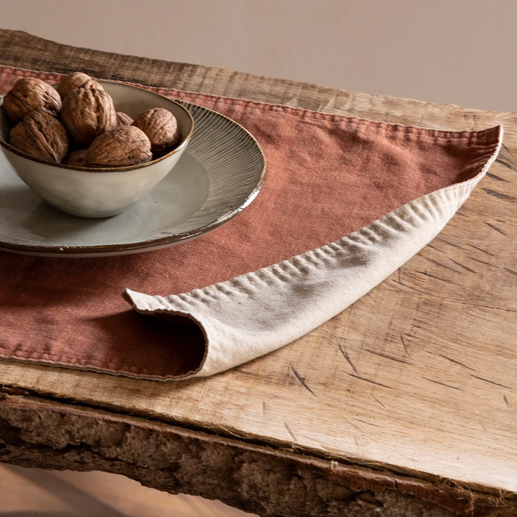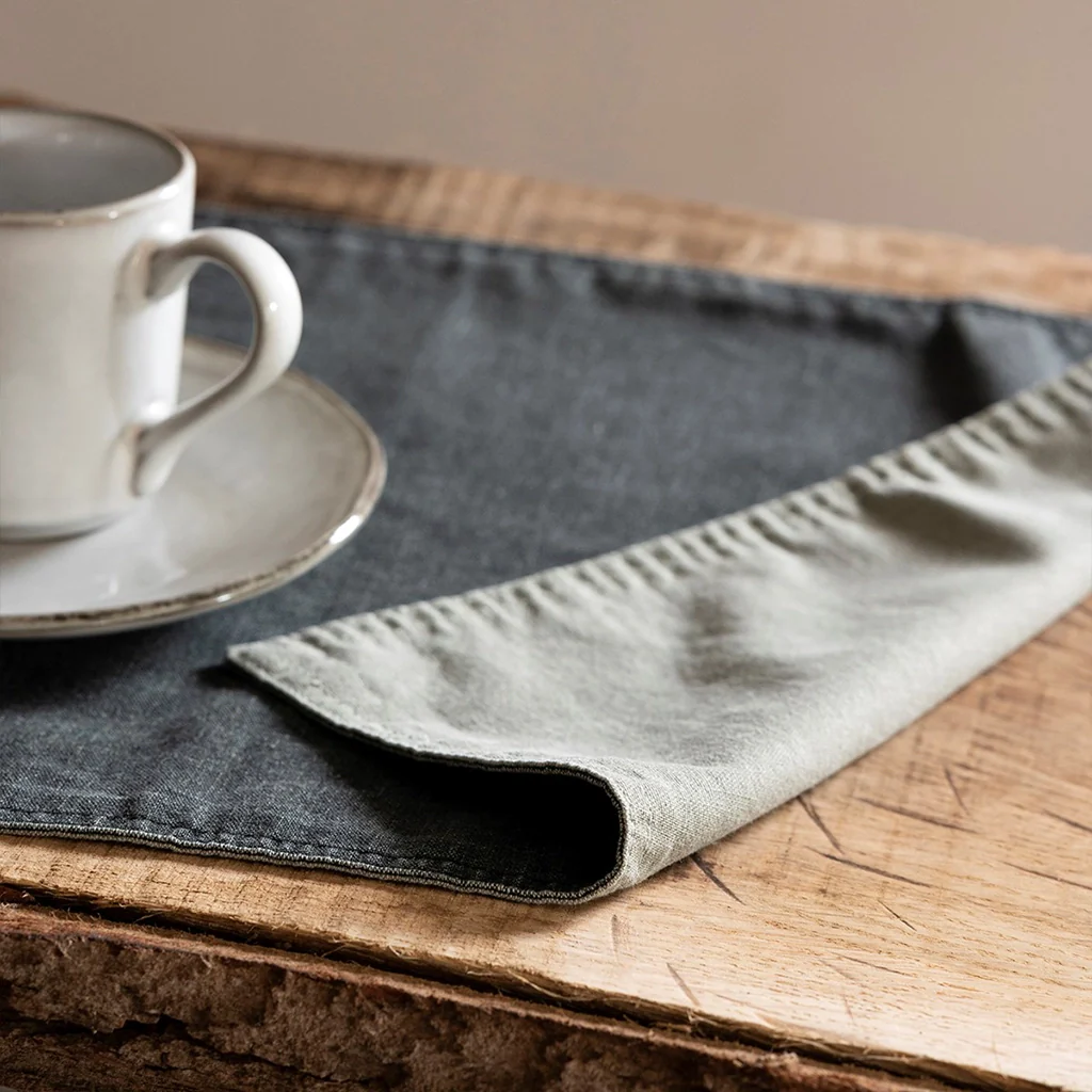 - Mantel individual reversible en dos colores a elegir: gris o marrón.