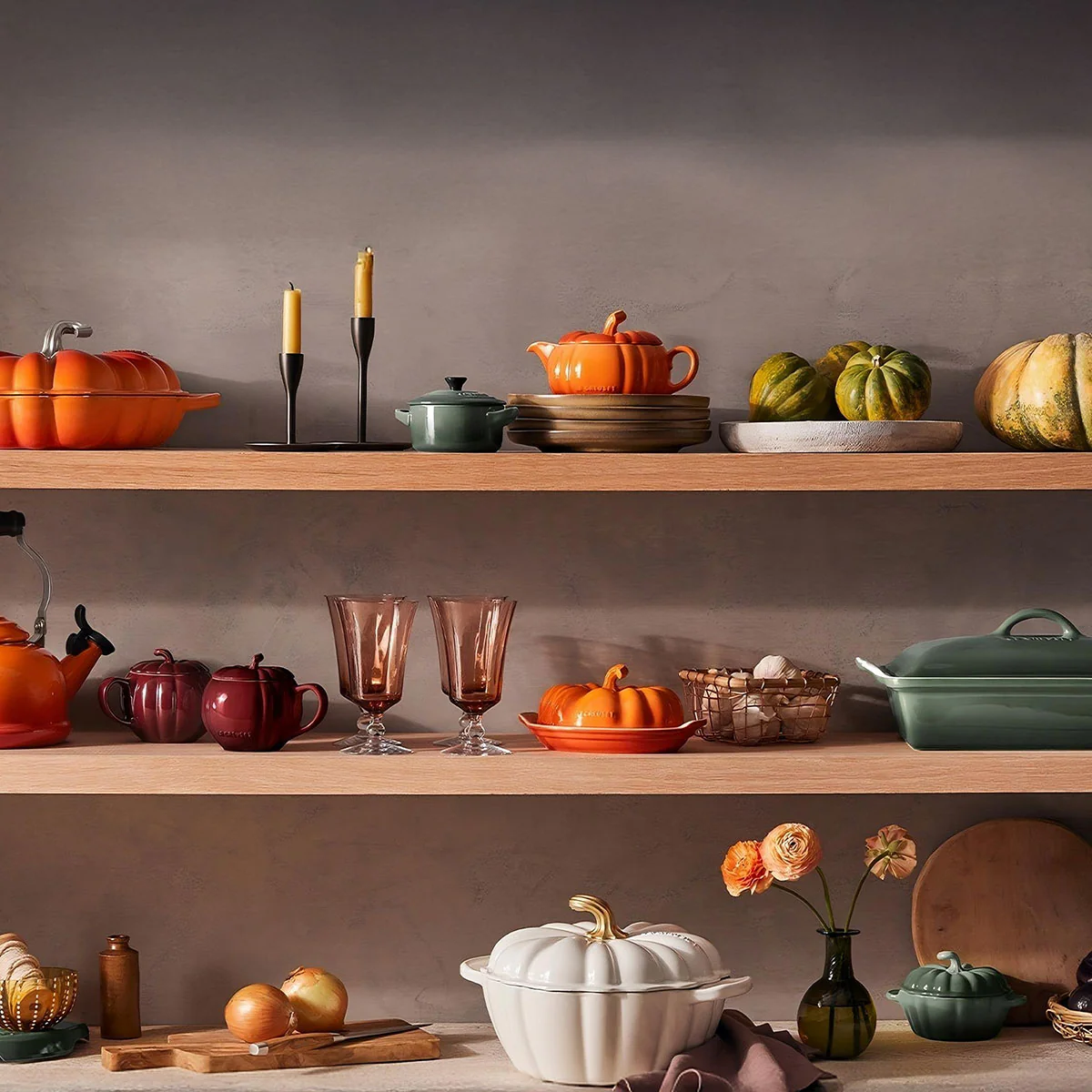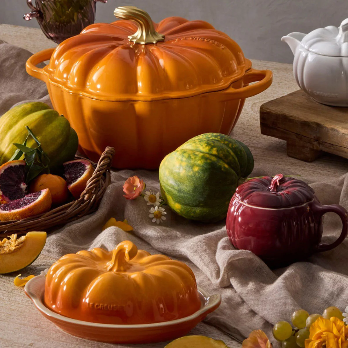 La encantadora mantequera Calabaza de cerámica de gres, con la que Le Creuset amplía su colección más otoñal, no puede faltar entre tus favoritas. Es una pieza preciosa y una opción ideal para conservar la mantequilla o los quesos, y presentarla en la mesa para sorprender a tus invitados.