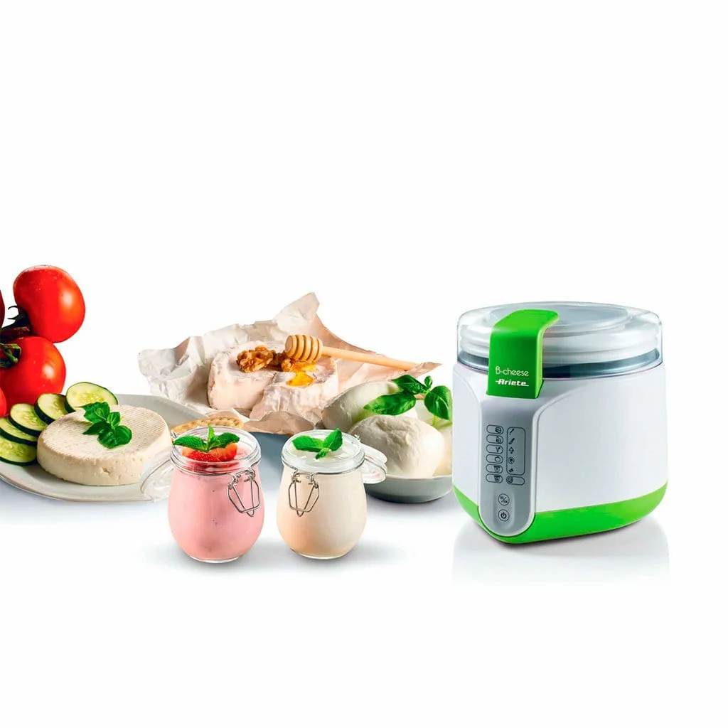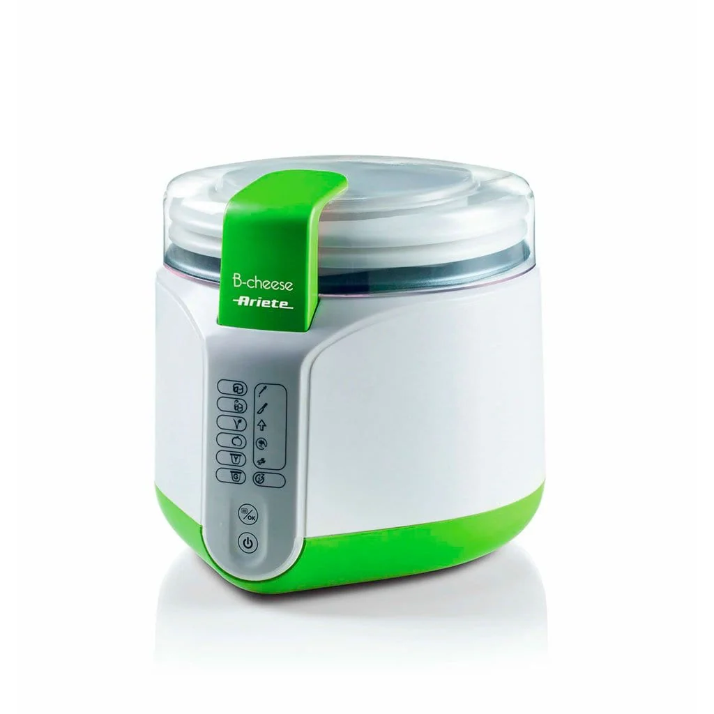 Con la nueva máquina de Ariete, vas a poder preparar deliciosos quesos y yogur de la forma más rápida en casa. Es una máquina que nos permite preparar queso fresco y yogur utilizando ingredientes naturales 100%, por lo que es ideal para los intolerantes a la lactosa y los veganos. Desde a mozzarelas a riccottas, queso de cabra tierno, yogur griego… Podrás hacer infinidad de quesos distintos, entre ellos quesos veganos (tiene un programa específico para ello) y en cantidad (su cuba es de hasta 2L de capacidad).