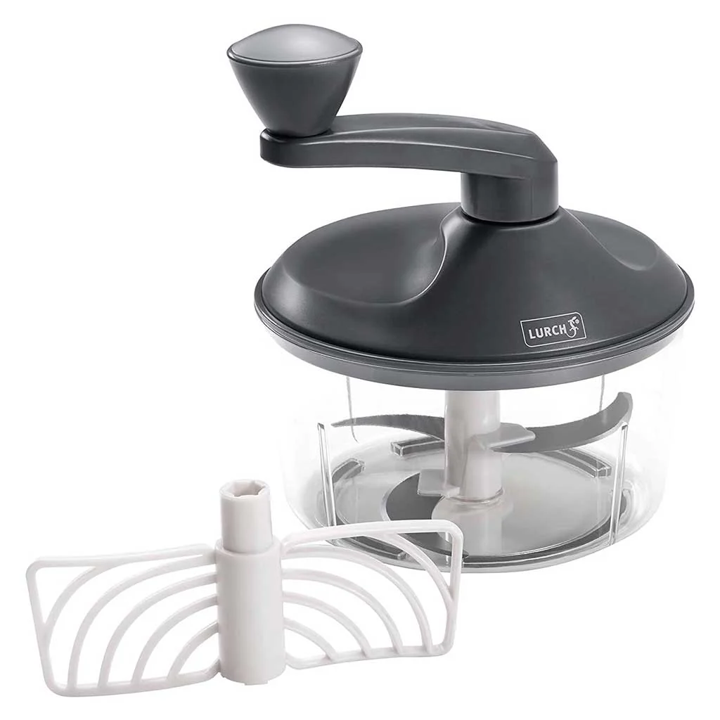 Tan sencillo como introducir en la cubeta los cereales, chocolate, frutos secos o frutas deshidratadas que más te apetezcan para tu muesli y poner la tapa. Con solo girar la manivela, las cuchillas triturarán los ingredientes.