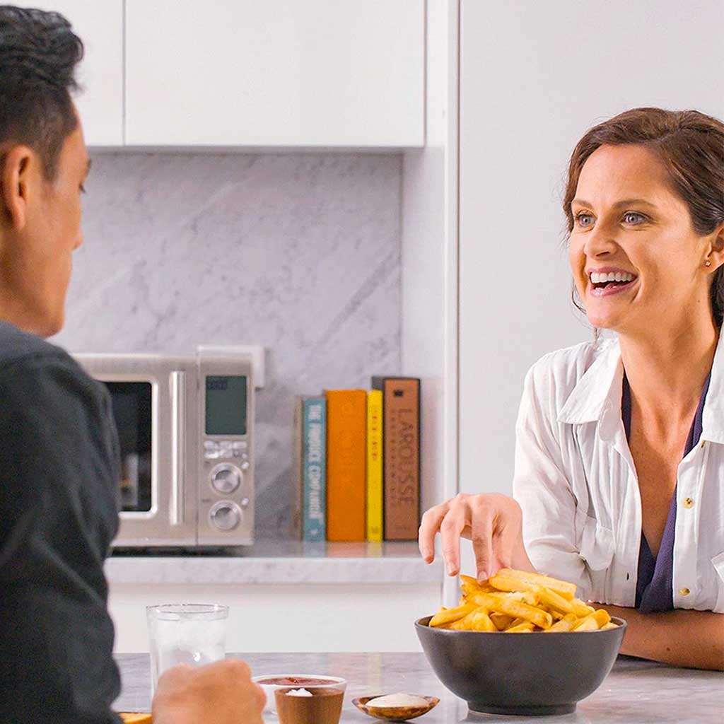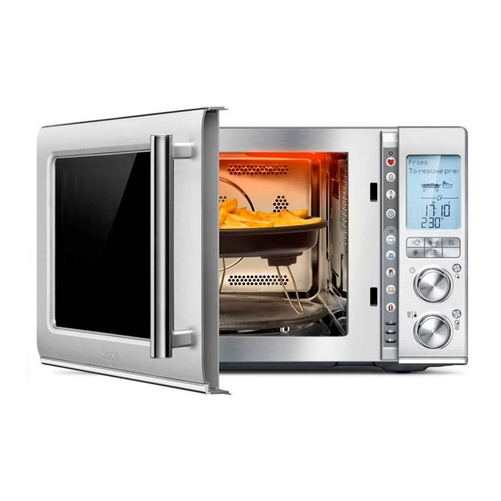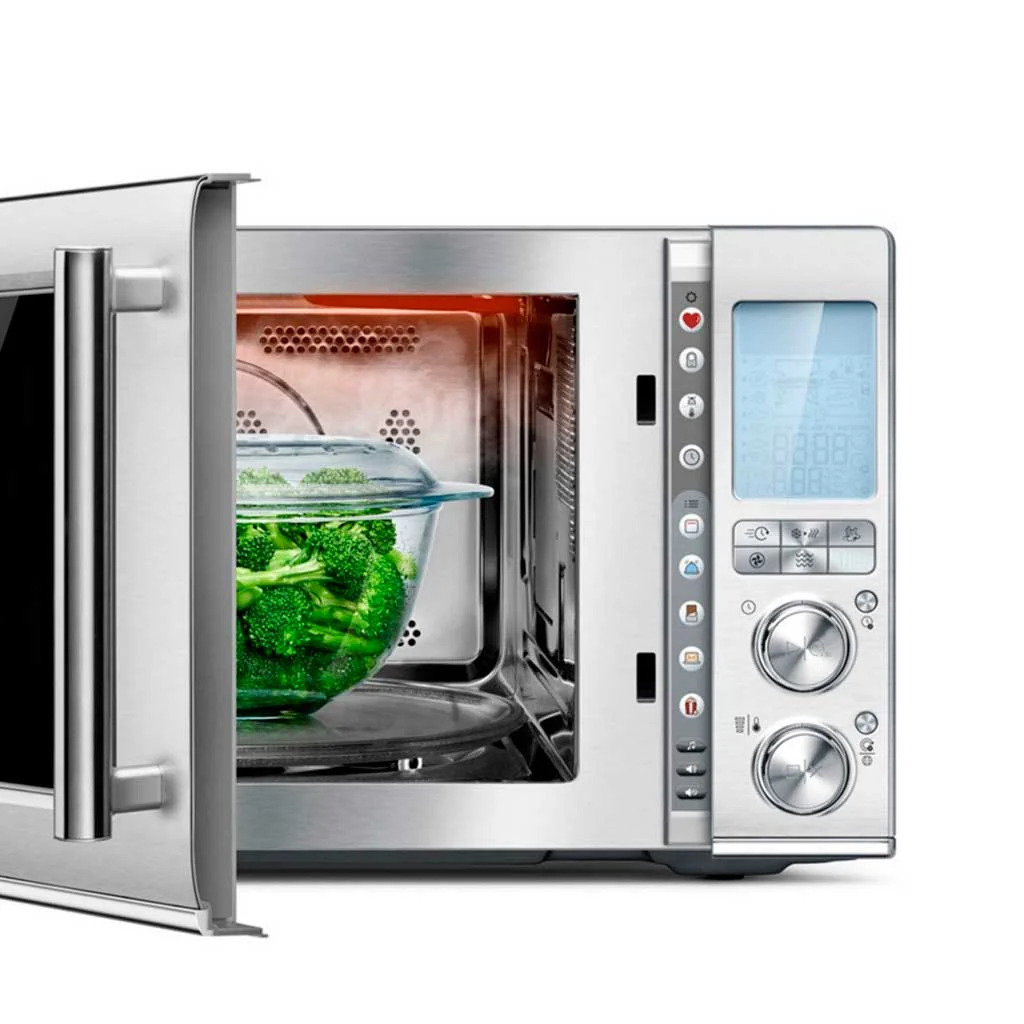 Con la gran calidad que caracteriza a la marca, el Microondas Combi Wave 3 en 1 de Sage, está fabricado en acero inoxidable cepillado, simplificando tanto su limpieza como también la preparación de todas tus recetas de diario, así como las más elaboradas, porque cocina, recalienta y descongela de la forma más inteligente y eficiente: