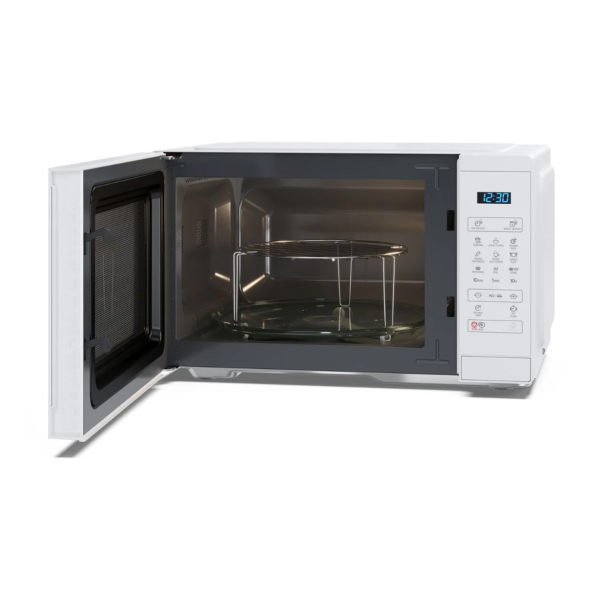 Este microondas incluye un plato giratorio de 28cm de diámetro y también una parrilla grill para que puedas gratinar lasañas, macarrones o tostar pan. A la función grill de este microondas hay que sumarle ocho programas diferentes y 11 niveles de potencia, cosa que te permite ajustar al máximo la temperatura a tus necesidades.