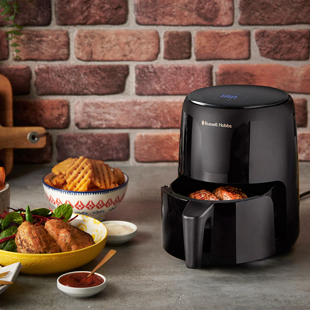 Prepara elaborados y deliciosos platos de forma rápida y cómoda con la Mini Freidora de Aire Satisfry de Russell Hobbs. Con una potencia de 1.100 W y un cajón para freír con una capacidad de 1,8 litros, esta freidora combina efectividad y comodidad para hacer tus días más llevaderos.