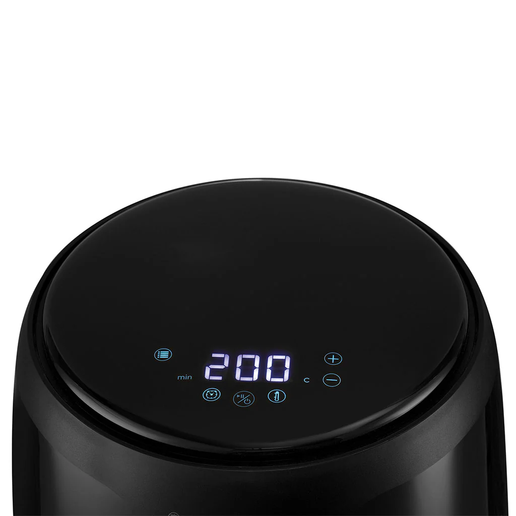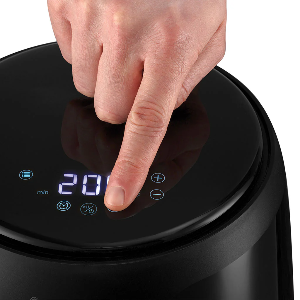 Equipada con una pantalla táctil digital y un temporizador regulable de 60 minutos, su uso es muy sencillo. La temperatura variable hasta 200 ºC y las 7 funciones de cocción te permitirán preparar tus platos favoritos a tu gusto y sin complicaciones. ¡Tus recetas saldrán de rechupete! Además, fríe de forma más saludable y sin olores, ofreciendo hasta un 68% de ahorro de energía en comparación con un horno convencional.