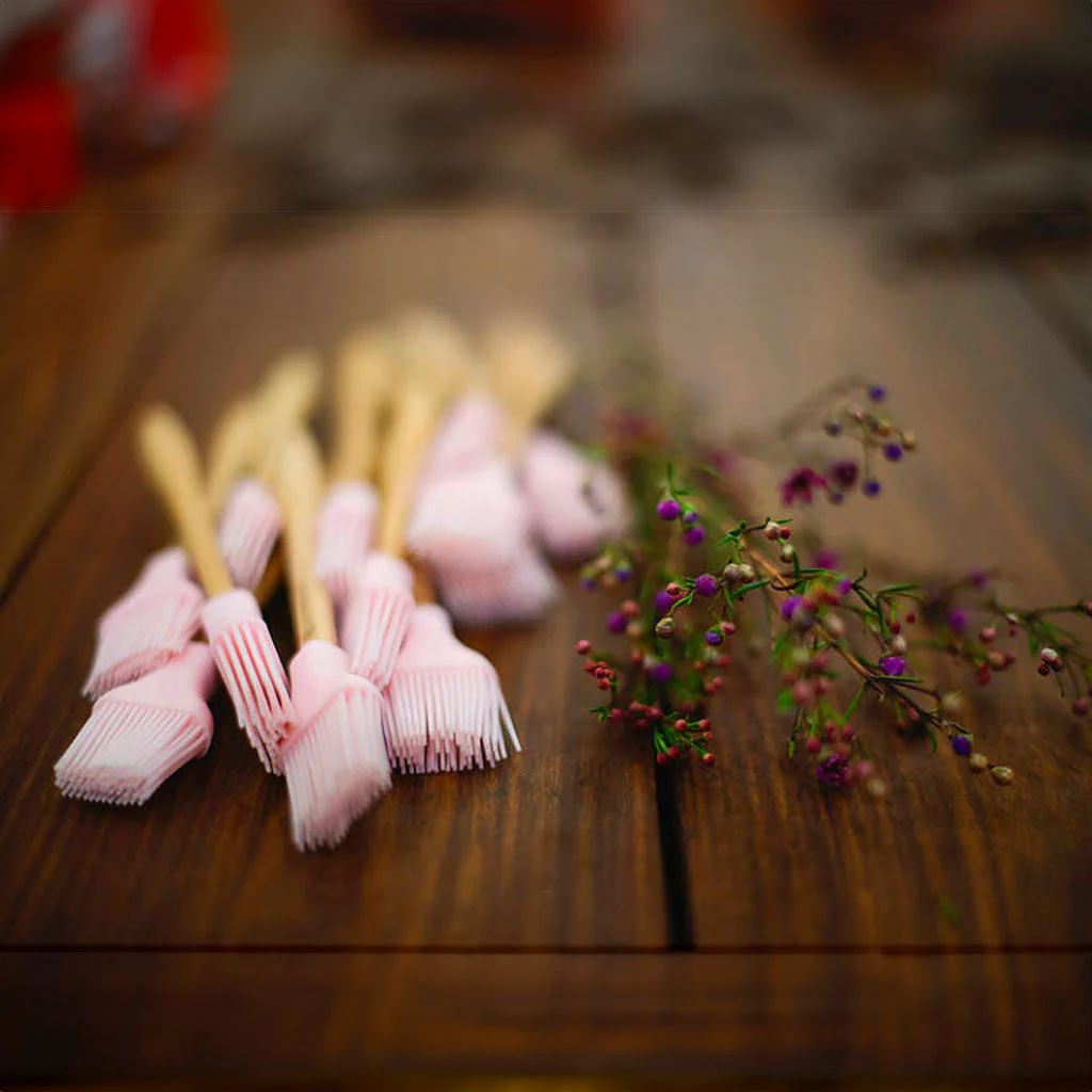 El Mini Pincel Chiffon Pink es un bonito y práctico utensilio. Este pequeño pincel cuenta con mango de madera y cabezal de silicona. A pesar de ser mini, se adapta a cualquier zona de tus moldes, cazuelas, bandejas o sartenes, ya sean redondas o cuadradas. Además, es ideal para usar en repostería gracias a su tamaño.