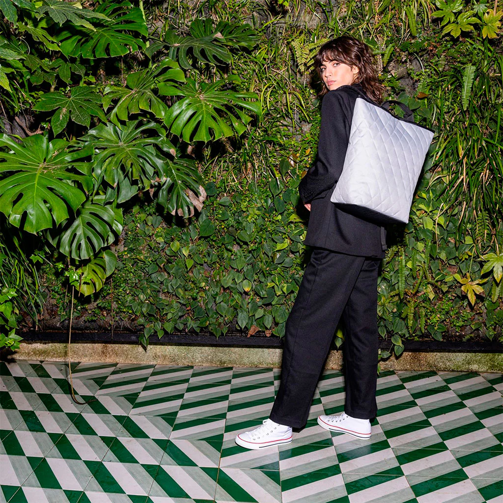 Fabricada a partir de botellas de PET recicladas, esta mochila no solo es resistente al agua, sino también una opción ecológica que respeta el medio ambiente. Su elegante diseño en forma de rombo es moderno y elegante ¡y quedará genial con cualquier outfit que te pongas!