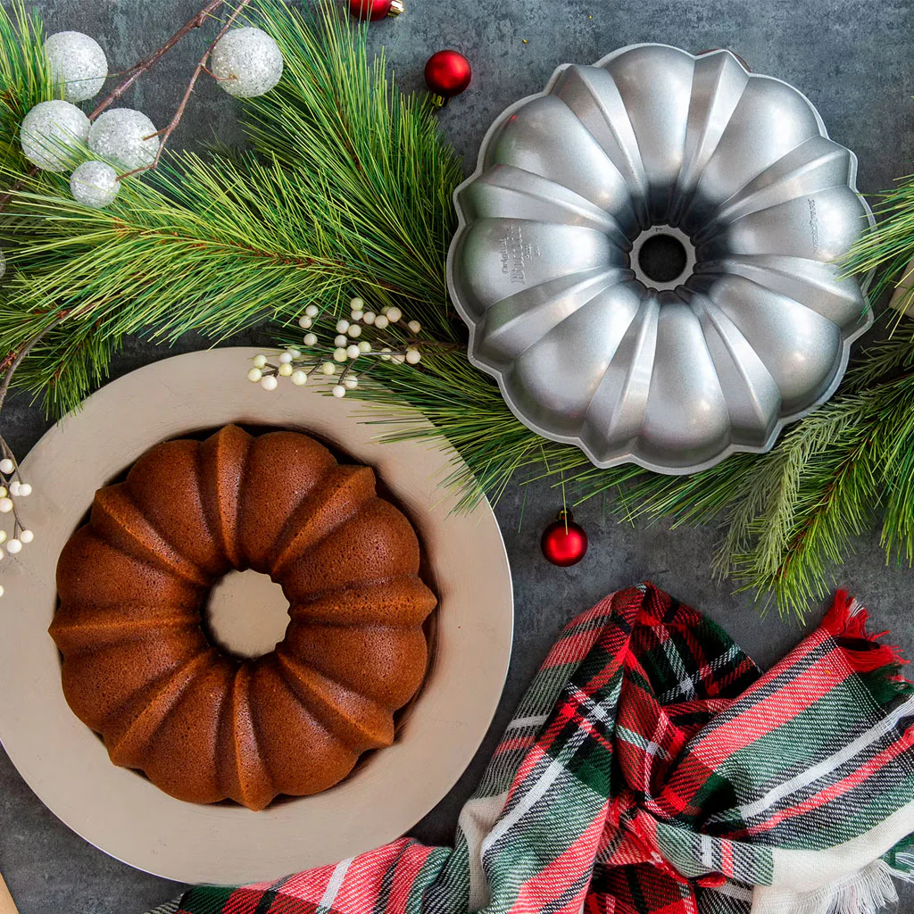 El molde de la versión original del clásico Anniversary de Nordic Ware… ¡En edición limitada en plateado brillante! (original Sparkling Silver Bundt®).