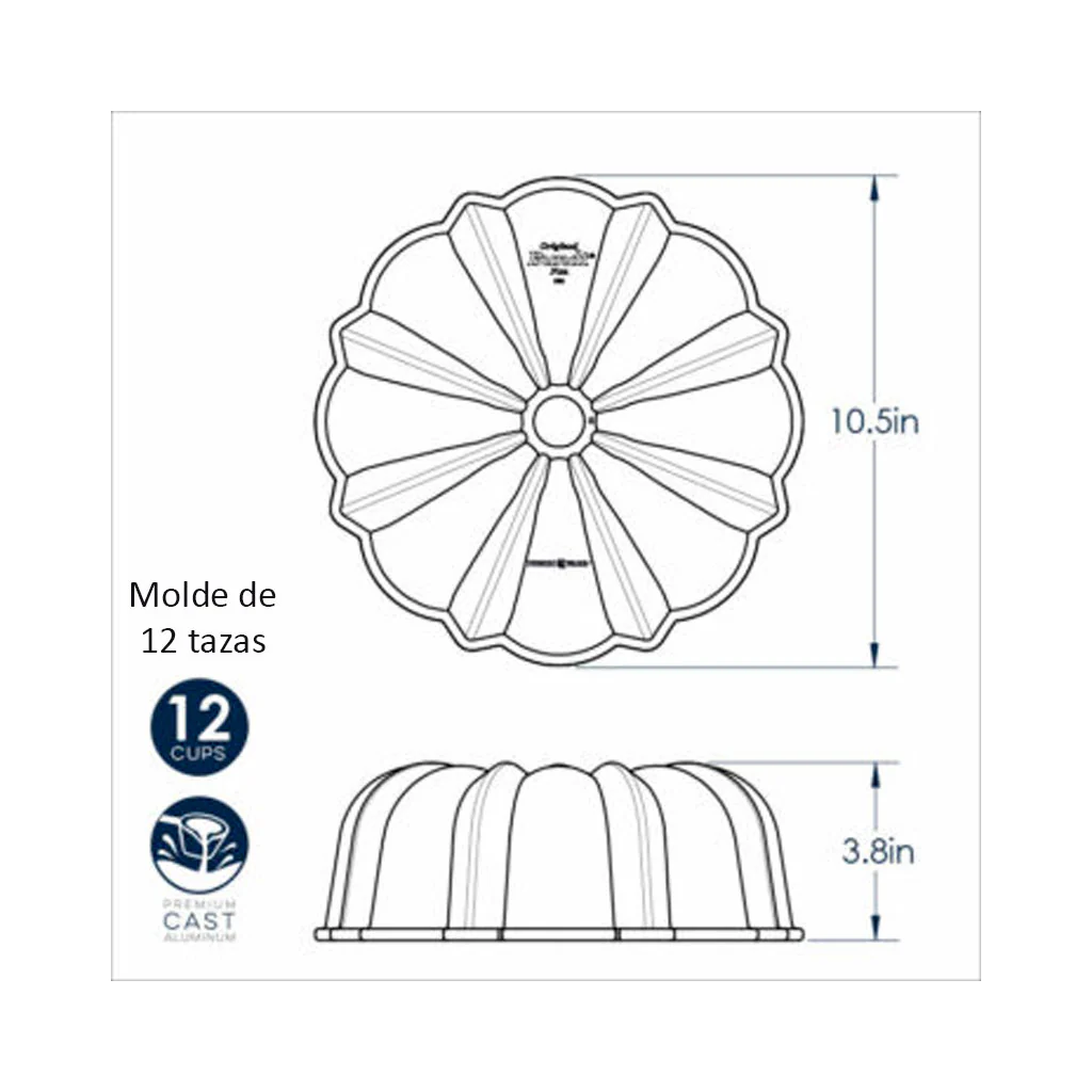 Es un molde de aluminio fundido, con diseño acanalado e interior antiadherente, fabricado en los EE. UU y con toda la calidad y robustez de los moldes Nordic Ware.