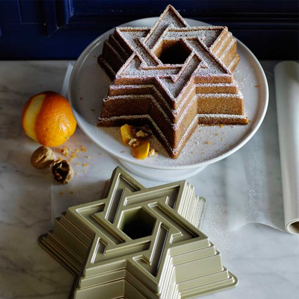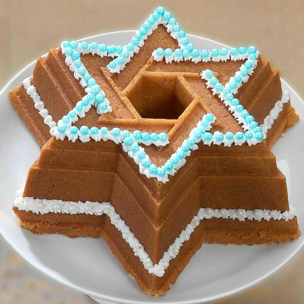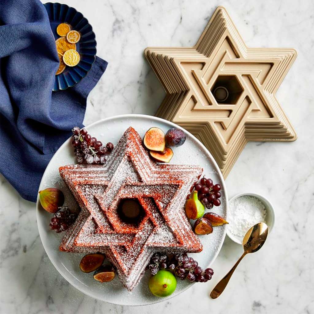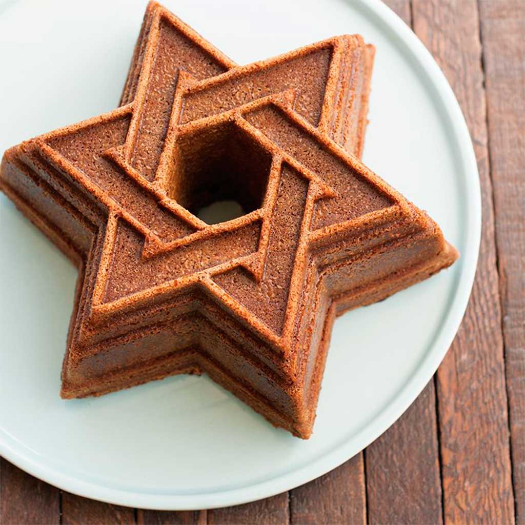 El Molde bundt Estrella de David de Nordic Ware, es un molde fabricado en aluminio colado. Ideal para hacer bundts, bizcochos y pasteles en forma de la estrella de seis puntas, es también un molde estupendo para preparar tus postres fríos. Y cuando lo desmoldes, su relieve con los detalles tan definidos ¡te va a encantar!