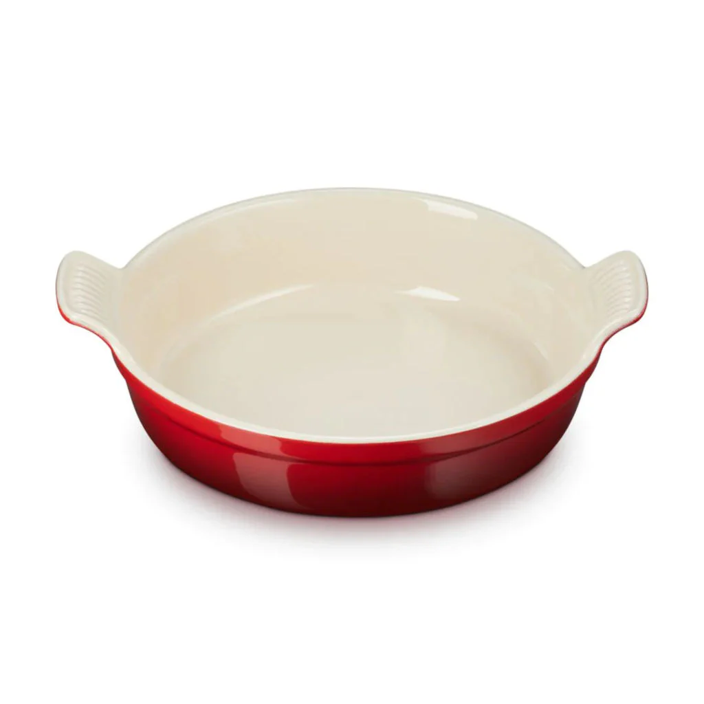 Puedes llamarlo molde para bizcochos y pasteles o bandeja cerámica redonda Heritage de Le Creuset. Con ambos nombres, esta pieza tan especial de la marca, es ideal para todo tipo de recetas: podrás tanto cocinar en el horno pescado, carne, gratinar lasañas, canelones o vegetales, ¡como realizar deliciosas recetas dulces! ¡Seguro que ya sabes de qué será el primer bizcocho que harás en él!
