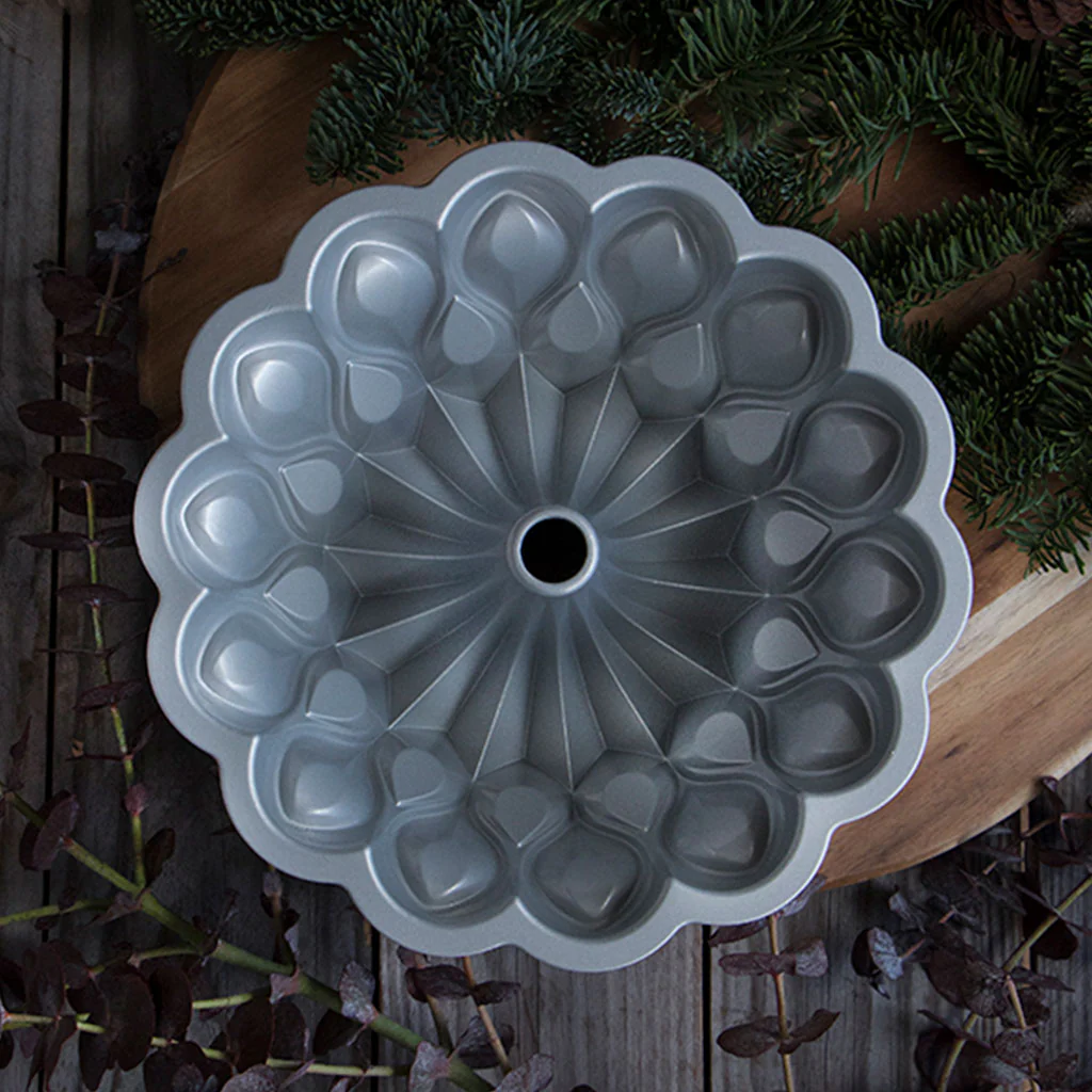 El molde Crown es un molde tipo bundt de Nordic Ware, fabricado en aluminio y perfecto para hacer bizcochos y pasteles. Mide 26cm de ancho y 10,5cm de alto.