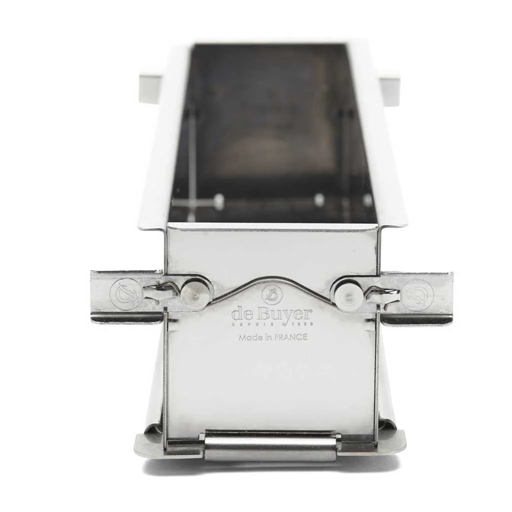 El Molde desplegable perforado inox De Buyer es el primer molde desplegable con bisagras integradas. Un molde rectangular robusto, indeformable, de calidad profesional y fabricado totalmente en acero inoxidable. Su diseño integral, con pestillos basculantes, permite desplegarlo fácilmente y sin que se pierda nada. Las perforaciones garantizan una cocción uniforme de la masa, siendo excelente para hornear desde panes de molde, a brioches, tartas dulces o incluso un pâté en croûte con el acabado crujiente que las caracteriza.