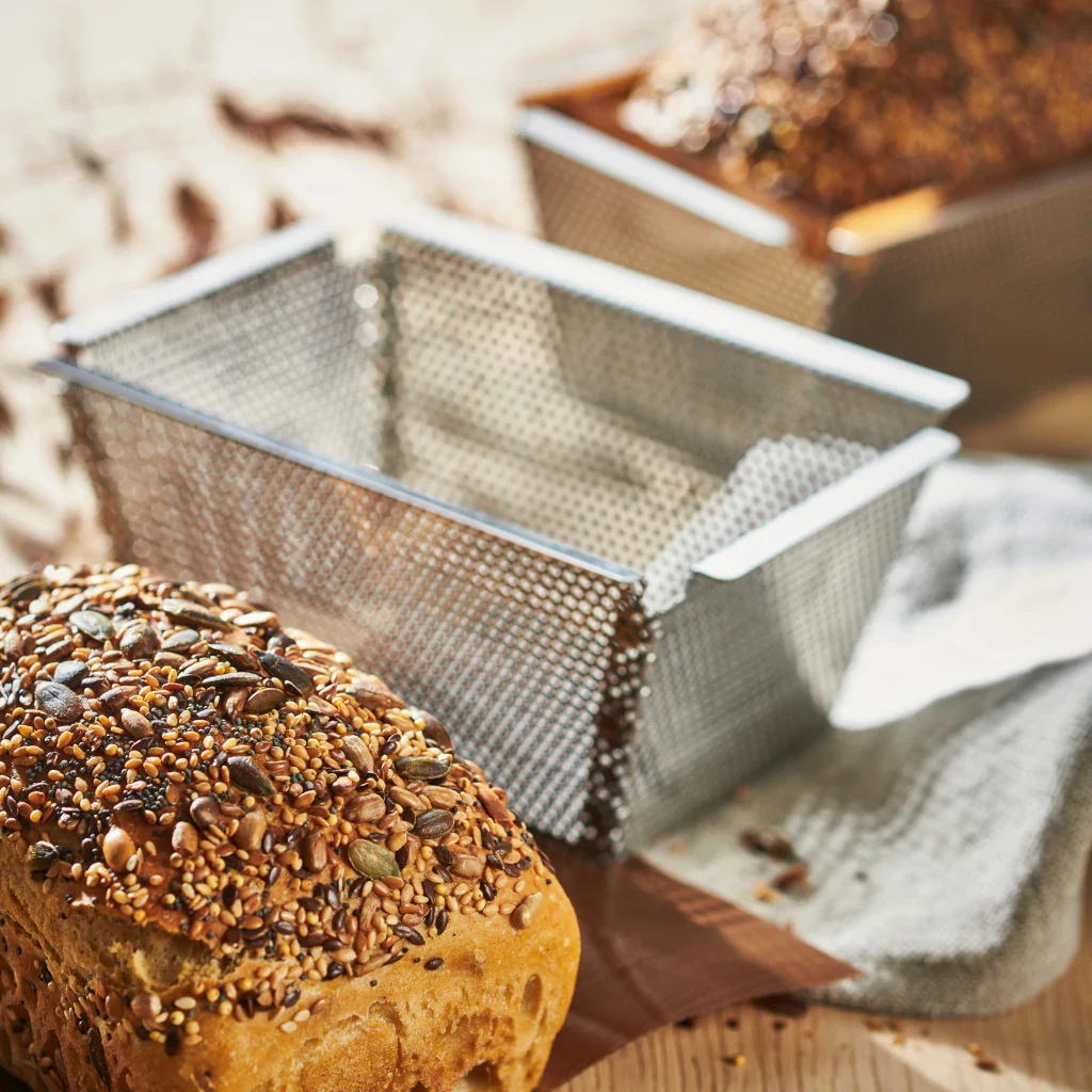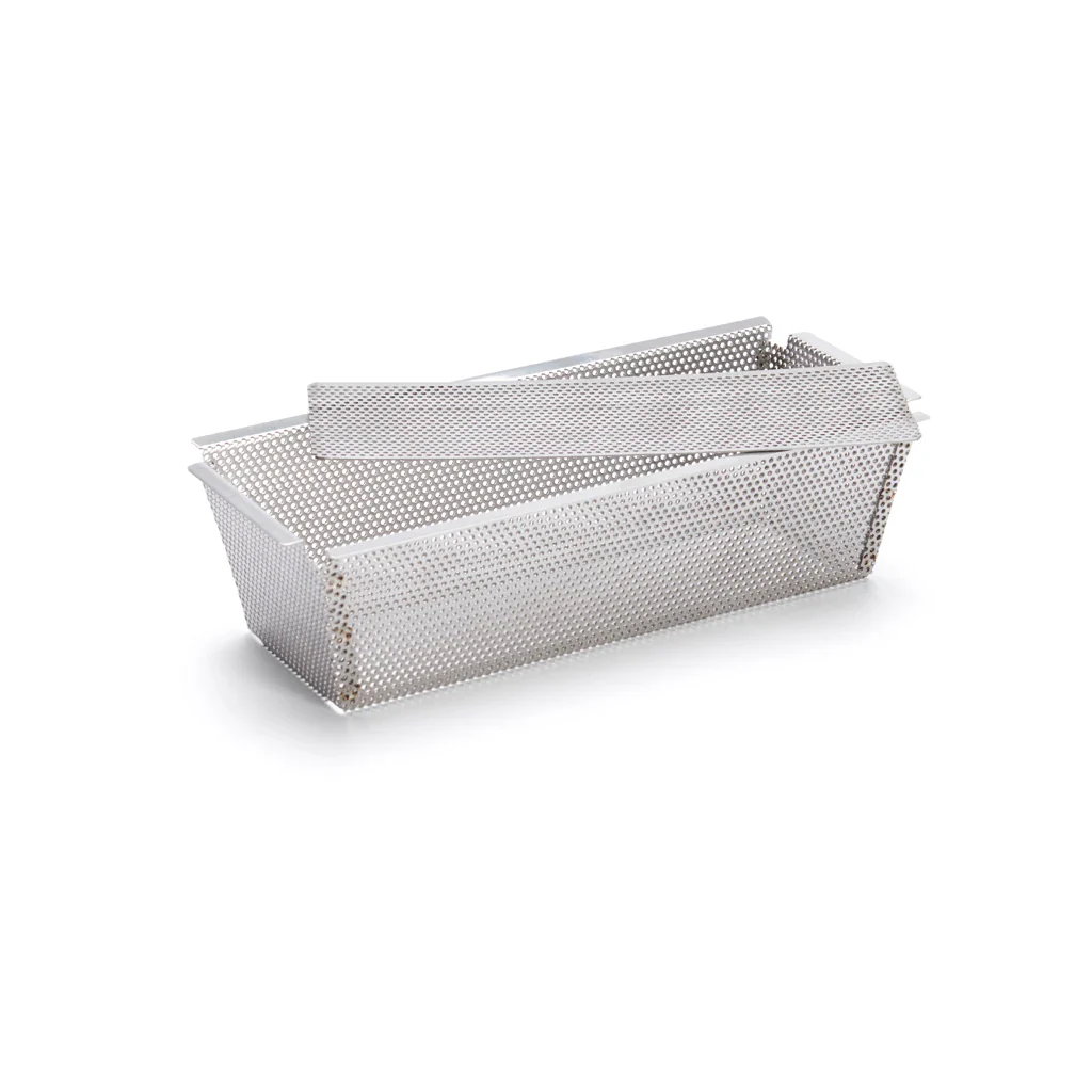 Panes, bizcochos y plumcakes perfectos, con el Molde inox rectangular perforado con base desmontable De Buyer. El molde, de calidad profesional, está fabricado en robusto acero inoxidable y cuenta con unas perforaciones estratégicamente diseñadas, para favorecer la entrada del aire caliente en la masa, consiguiendo una mejor cocción, más rápida y uniforme.