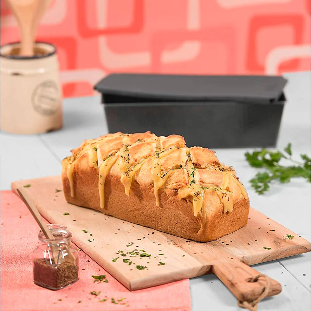 La tapa de silicona es apta para el horno, por lo que es perfecta tanto para cocer tus panes y brioches, como para taparlos una vez horneados y protegerlos. El cuerpo de acero del molde te garantiza un horneado uniforme y su revestimiento antiadherente te ayudará a desmoldar con suma facilidad.