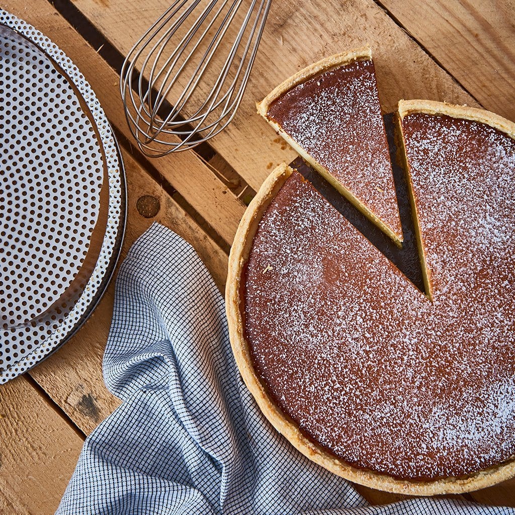 ¡Este molde te encantará! Se trata del nuevo molde para tartas y quiches perforado desmontable de De Buyer, con papel de hornear reutilizable, ¡y es perfecto! Está fabricado en acero inoxidable y tiene unas perforaciones que permiten que entre el aire caliente rápidamente en la masa y mejorar así la cocción de tus recetas, consiguiendo una cocción rápida y uniforme.