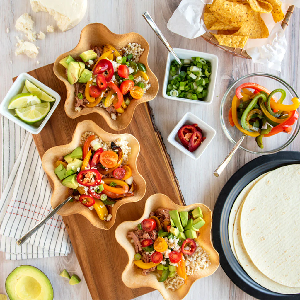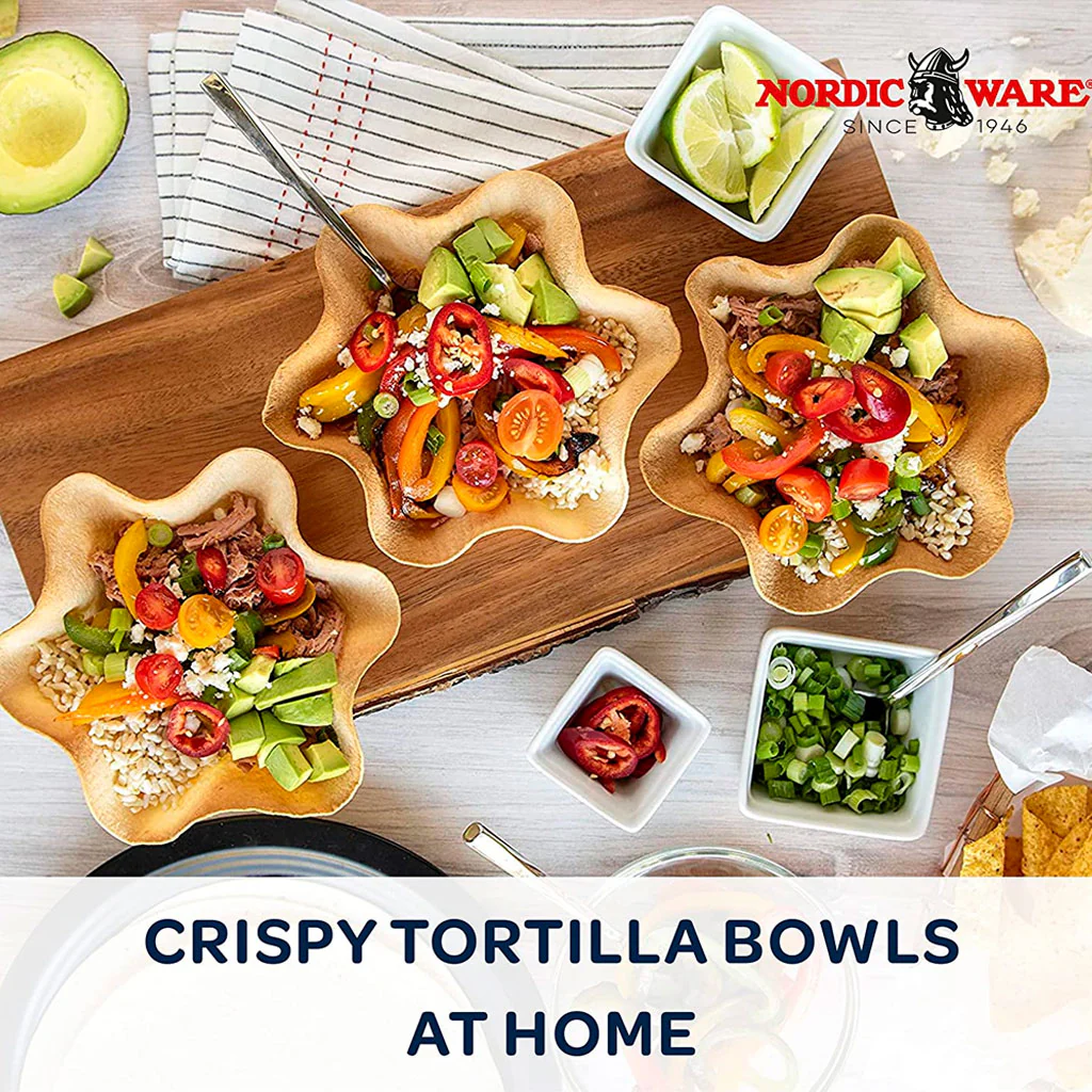 ¡Hacer boles comestibles nunca había sido más fácil! El Molde para tortillas Nordic Ware te permite hornear tortitas para convertirlas en boles deliciosos, que podrás rellenar a tu gusto con todo tipo de ensaladas, salsas y condimentos… ¡O servir postres deliciosos rellenándolas con helado!